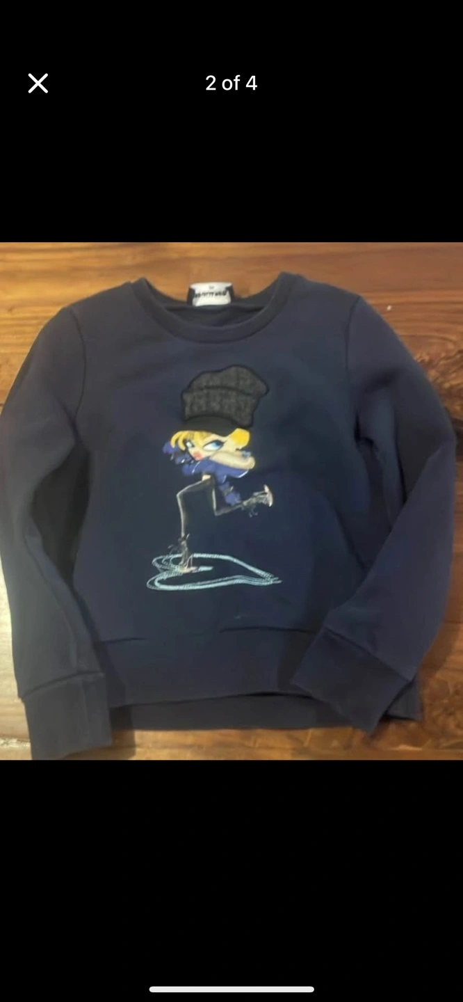Dark navy blue sweatshirt. Features a graphic design of a girl ice skating. DSQUARED2 branding on the neck label and back.