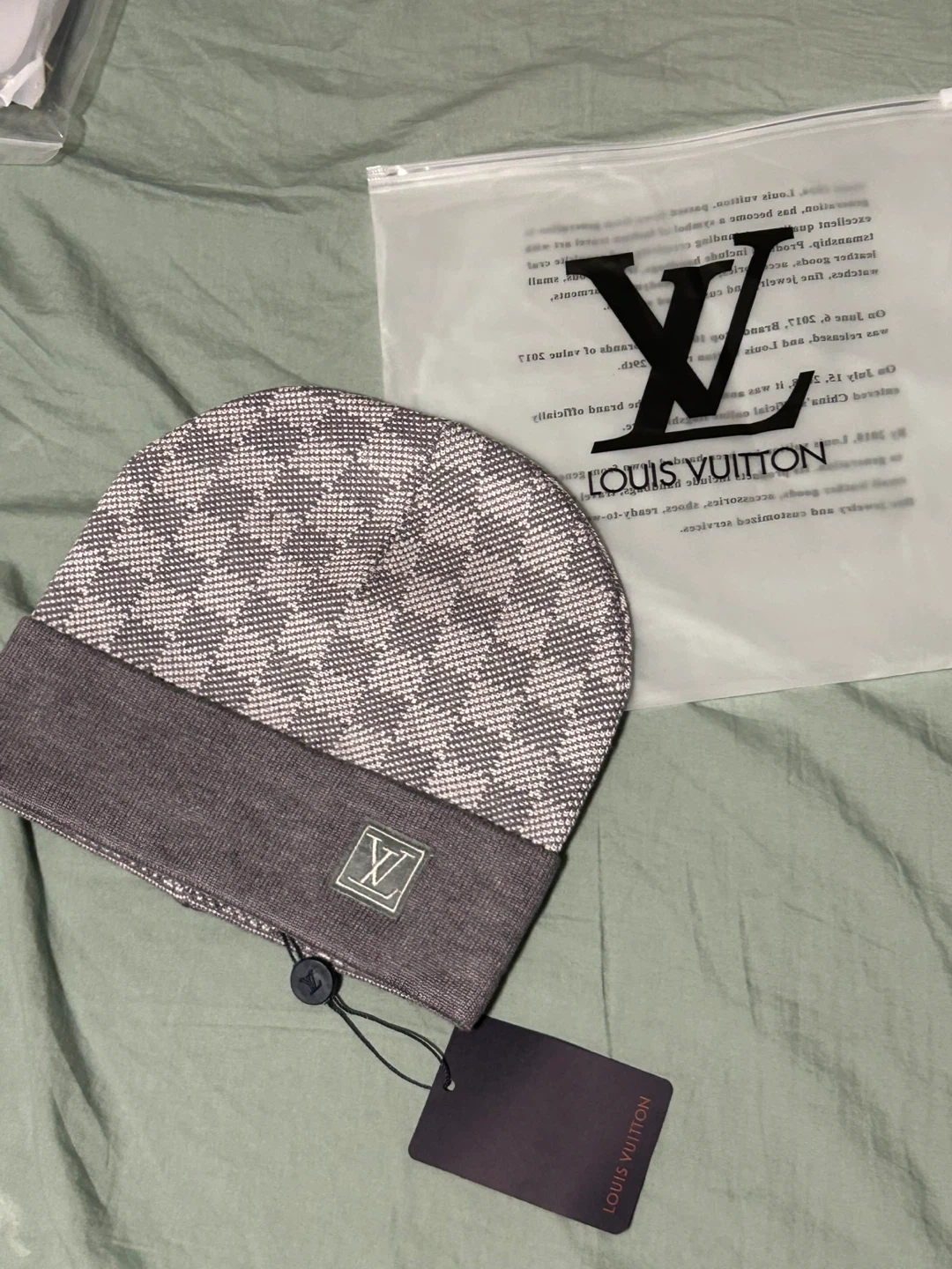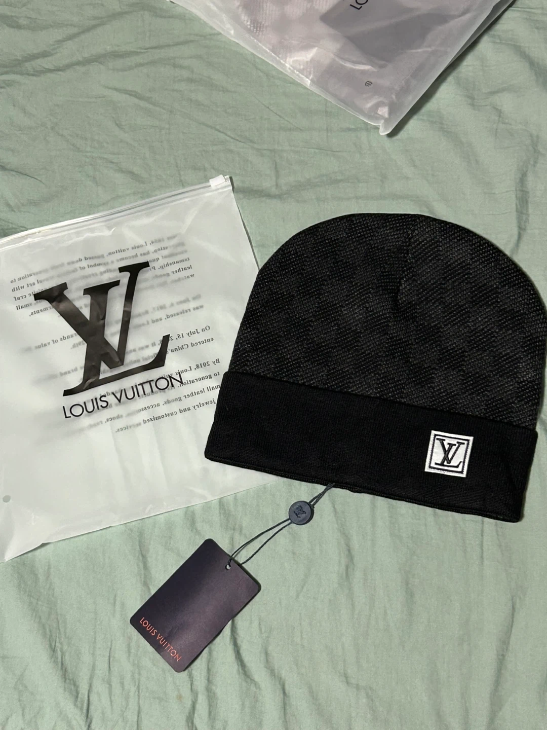 Louis Vuitton knit beanie. Comes with original packaging and tags. It's a stylish accessory for cooler weather.