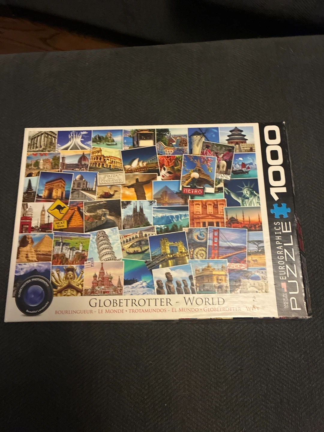 Selling a 1000-piece Eurographics puzzle featuring a Globetrotter - World theme. The puzzle showcases beautiful landmarks from around the world, making it a fun and engaging activity for puzzle enthusiasts. This is used and missing two pieces.