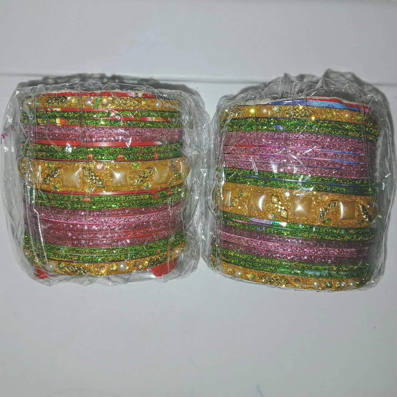 Here are two sets of bangles, still in their original packaging. They are multicolored and feature decorative accents. Perfect for adding a touch of sparkle to any outfit!