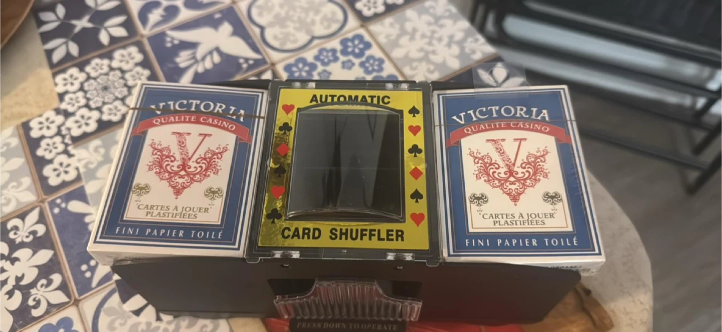 Selling an automatic card shuffler that can handle 2 decks of cards! It's battery operated and works for all standard size cards. Get your game night ready!