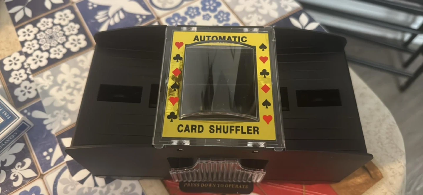 Selling an automatic card shuffler that can handle 2 decks of cards! It's battery operated and works for all standard size cards. Get your game night ready!