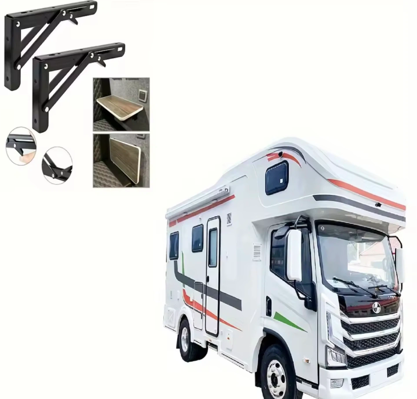 Selling a set of two folding shelf brackets! They're great for saving space and adding a little extra surface when you need it. The brackets are black and come with screws for easy installation. Each bracket measures approximately 7.87 inches by 4.53 inches.