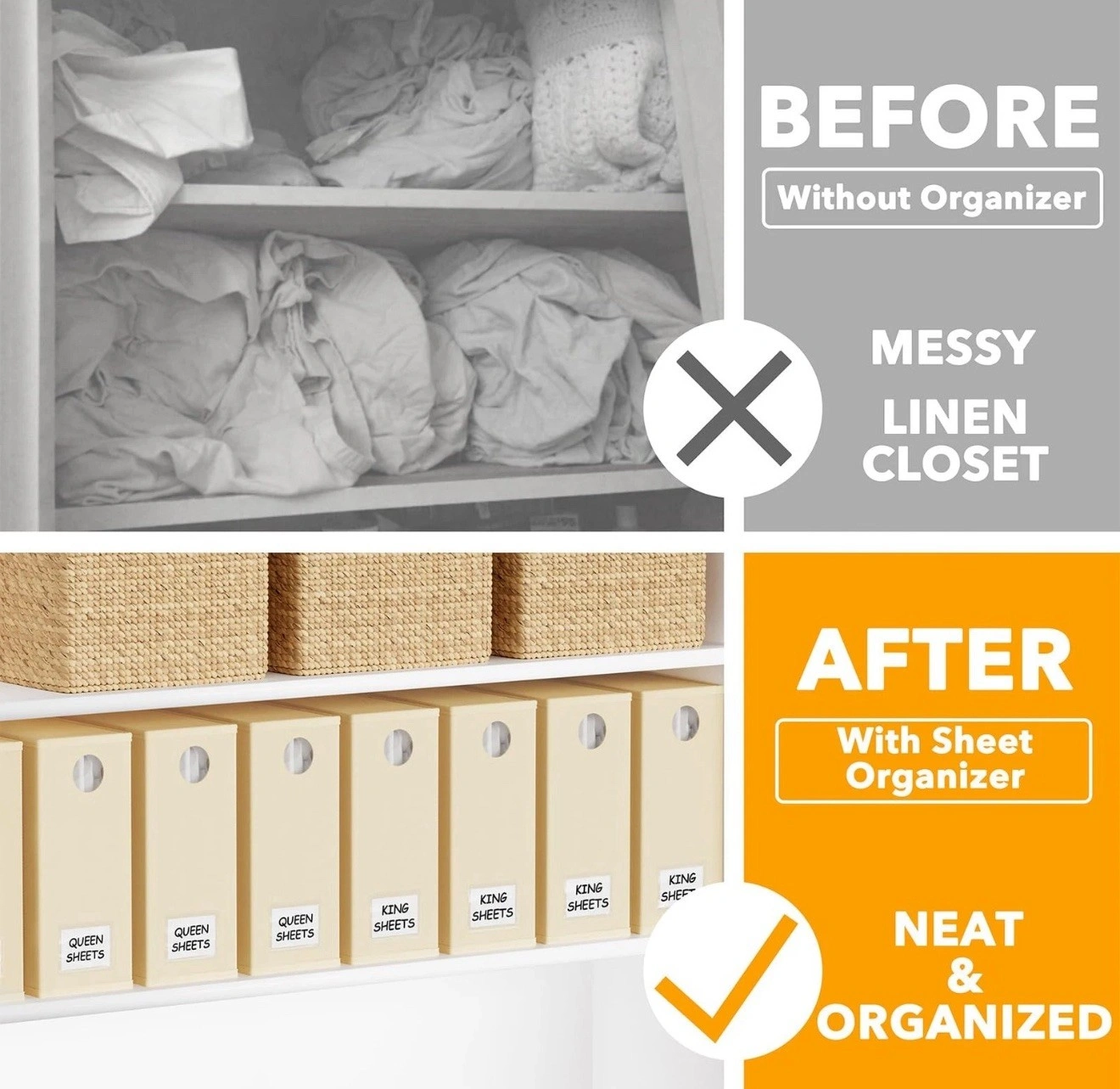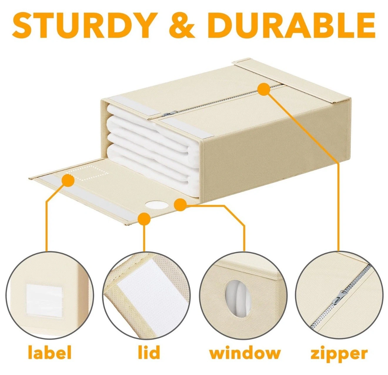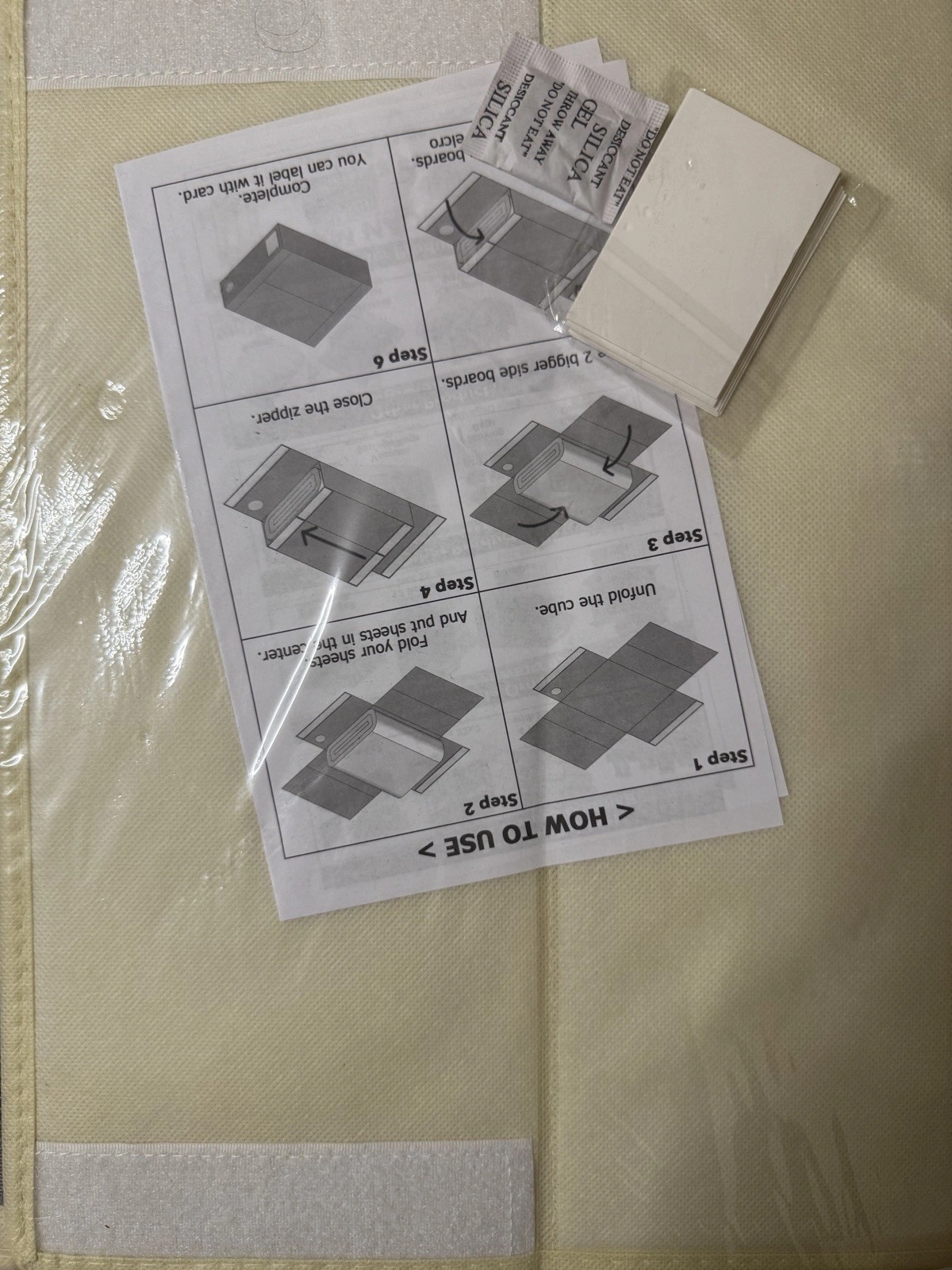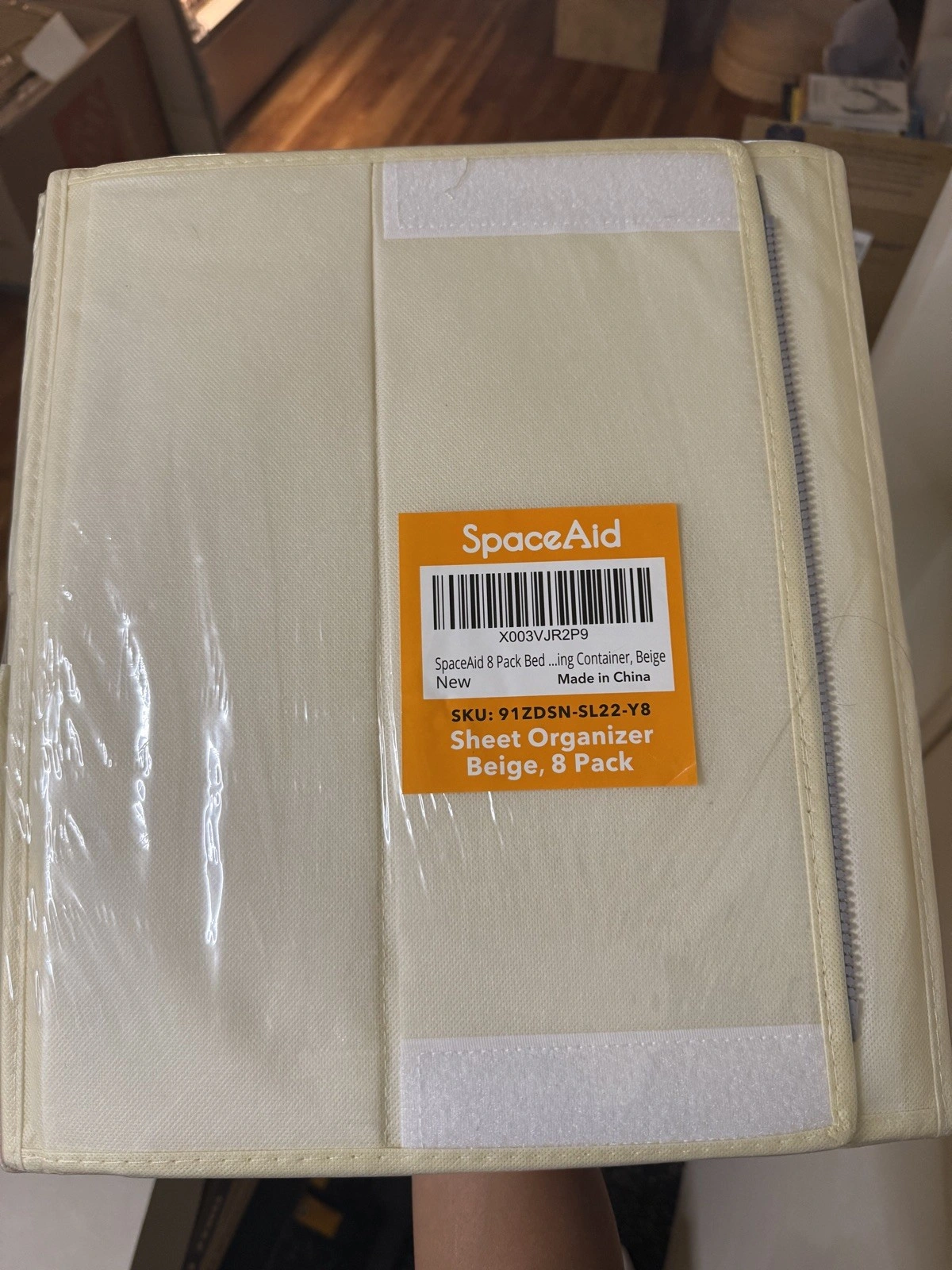 New, 8 pack of foldable fabric sheet organizers with zipper closure. Color: Beige. Storage Volume: 960.0. Feel free to message if you have any questions!