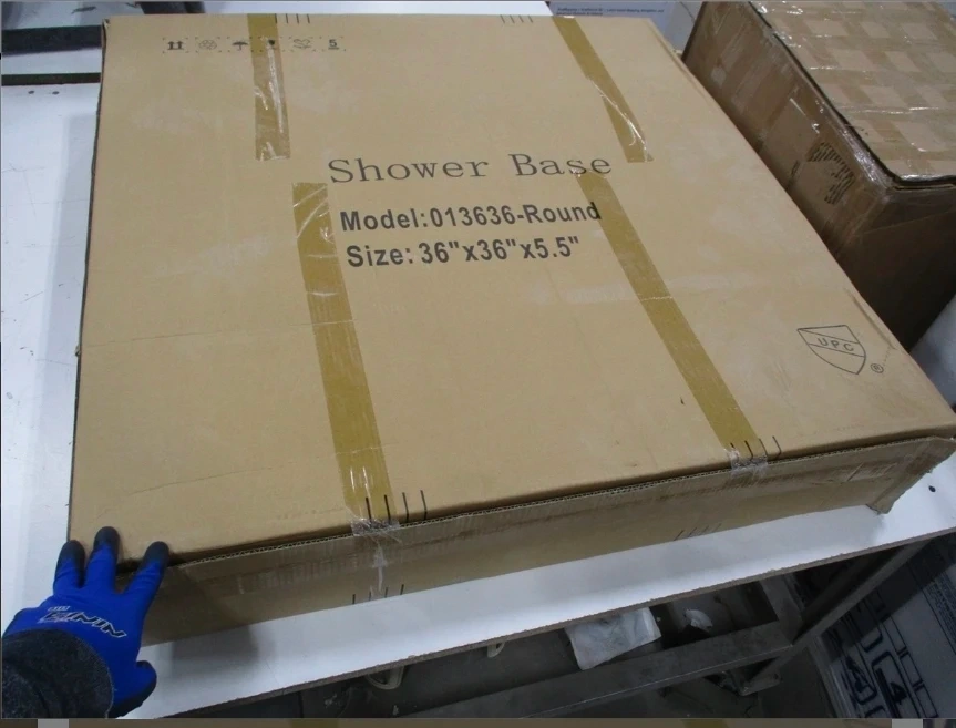 Shower base-Round. Size is 36"x36"x5.5". This is a new item in its original box. This shower base is for a corner installation.