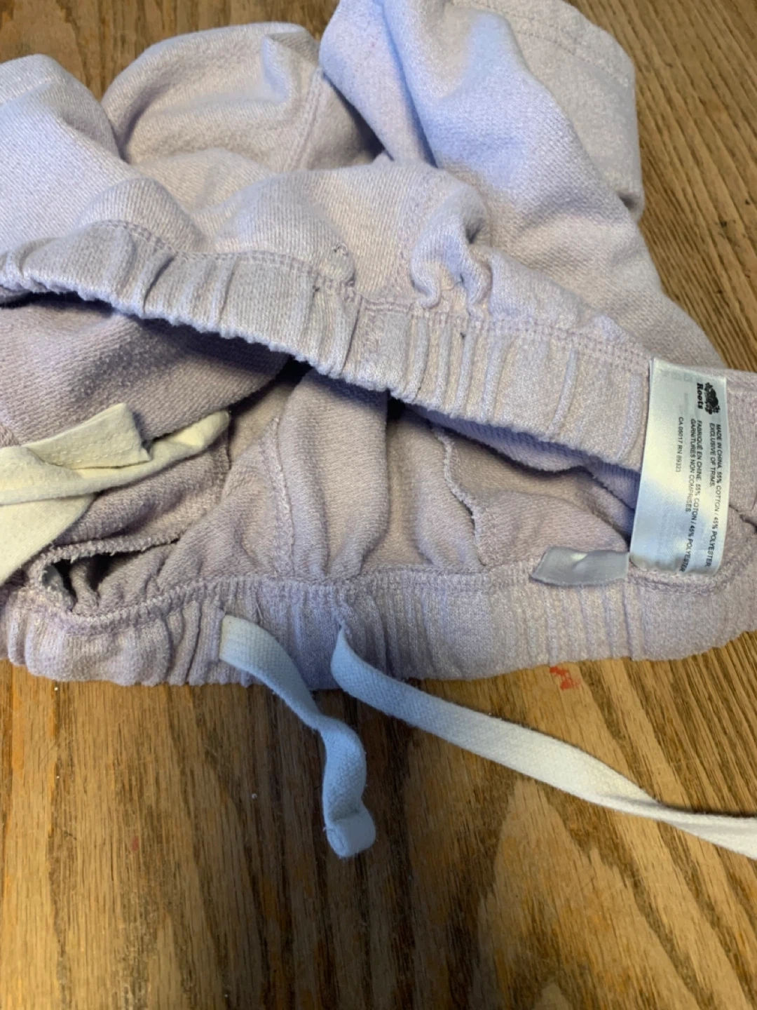 Elastic waist band, has strings hidden inside to tighten, cute and comfortable.