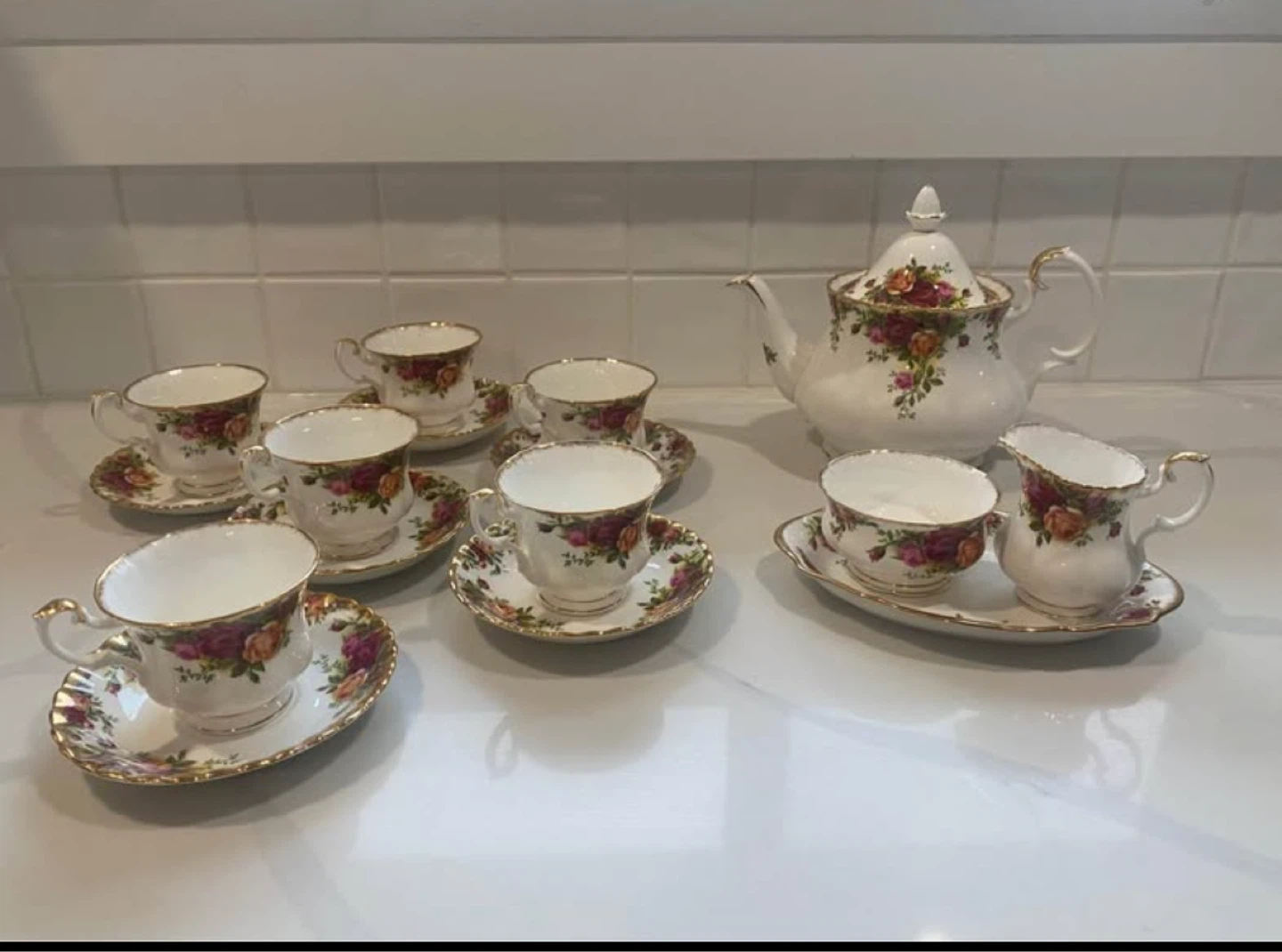Buy & SellRoyal Albert Old Country Roses Tea SetRoyal Albert Old Country Roses Tea Set$315This is a beautiful Royal Albert Old Country Roses tea set. It includes cups, saucers, a teapot, and a creamer. The set is made of fine bone china.WHERE TO MEETWestlock RoadView MapSELLERverifiedSabrinaDuncan650 reviews0 chats·0 favorites·22 viewsSEND CHAT TO SELLERHi Sabrina! I’m interested in your listing.Hi Sabrina! I’m interested in your listing.Get the Karrot app to chatSign In to chat