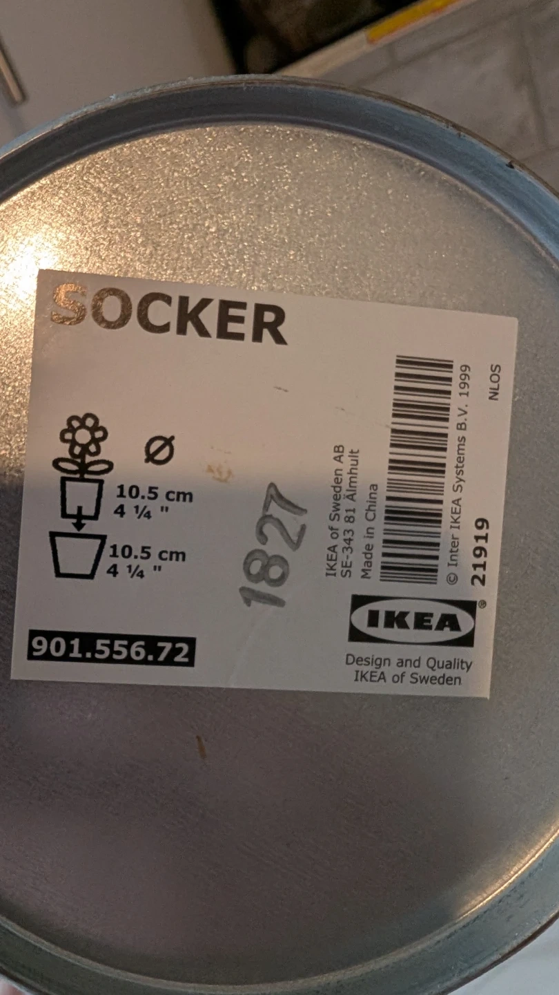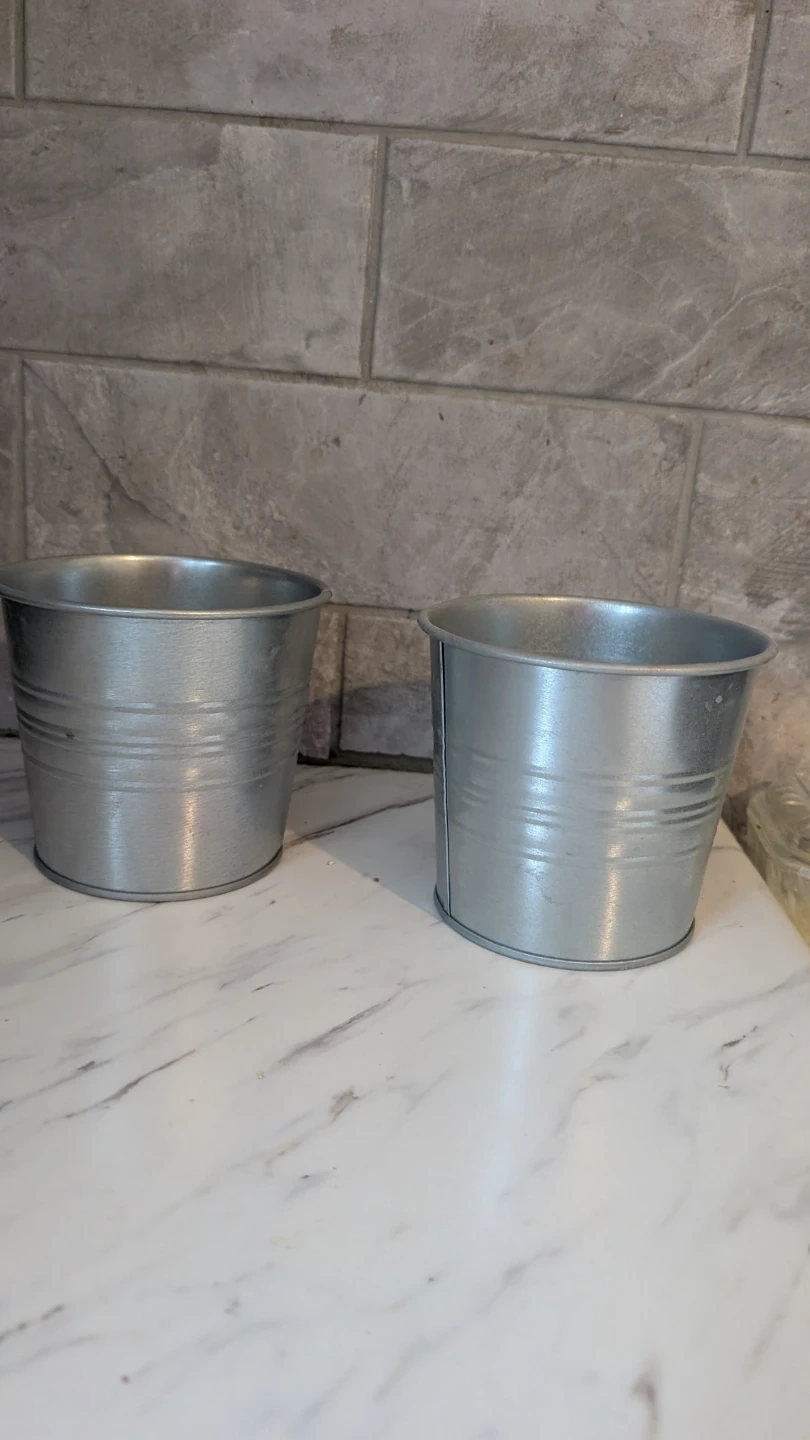 Two IKEA SOCKER plant pots. Each pot has a diameter of 10.5 cm. Made of metal. Great for small plants!
