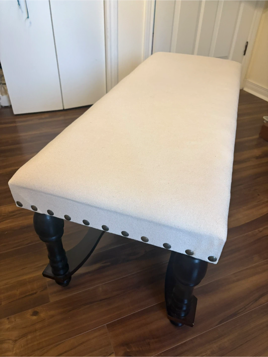 72Stylish, neutral bench in excellent condition. Great for bedroom, entryway, or living room styling. 44β wide β’ Linen upholstery β’ Espresso base β’ Nailhead trim Very clean + sturdy. π° $100 π Thornhill | Delivery possible Soft, classic, and perfect for cozy home vibes π€β¨