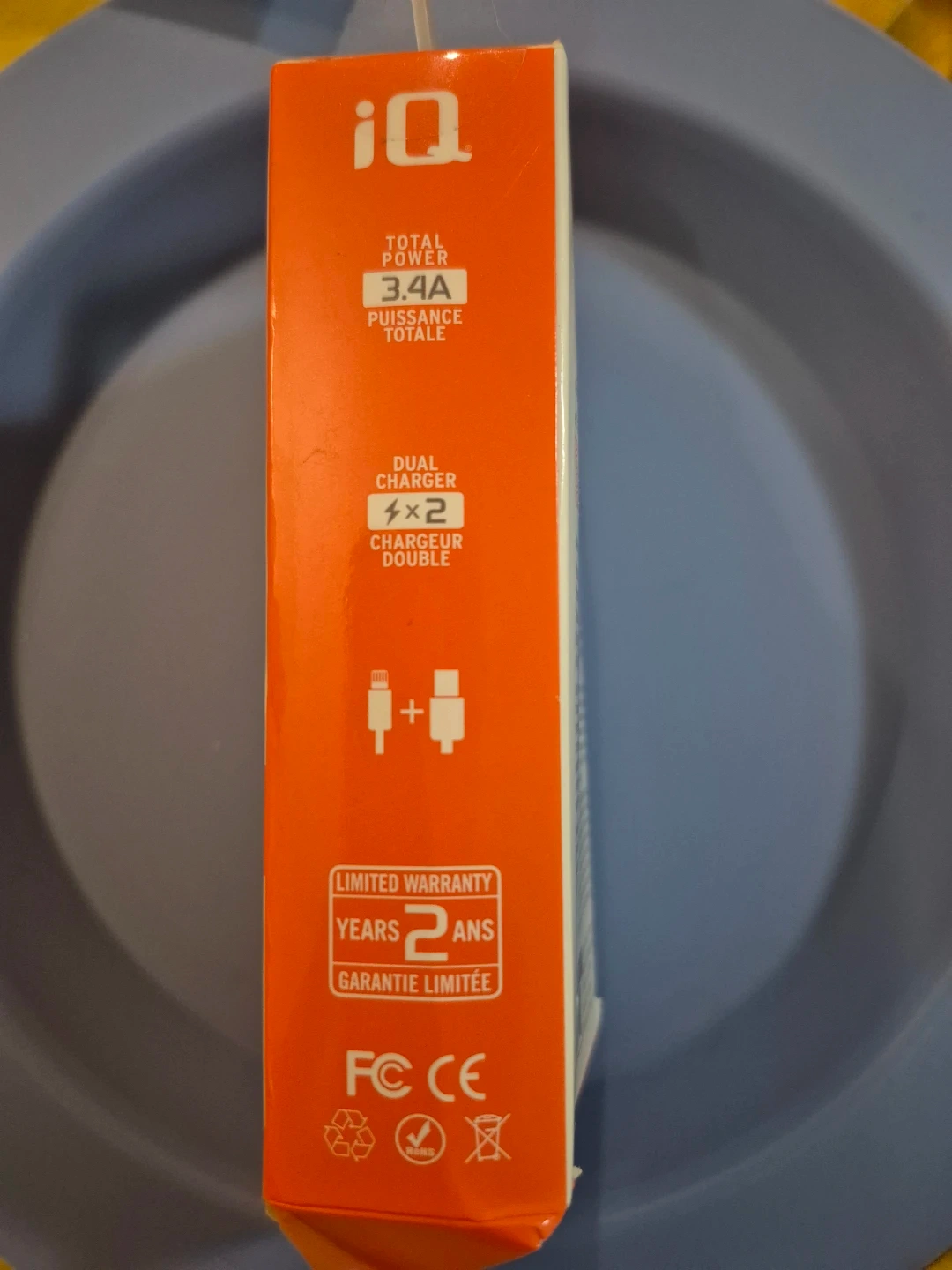 This iQ mobile power dual charger features a coiled Lightning cable for reduced tangling. It provides a total output of 3.4A for charging devices. Cable length is 1.2m (4ft).