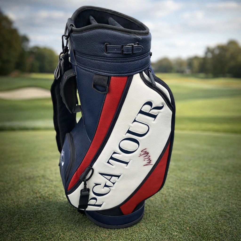 Mike Weir autograph, signed golf bag, PGA Tour bag, golf memorabilia, Canadian golf legend, Masters champion, collectible sports memorabilia, autographed PGA equipment