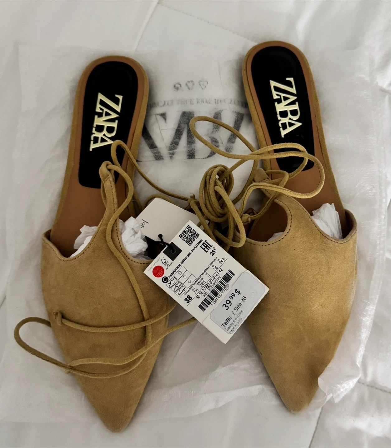 Buy & SellZARA Women's Tan pointed Toe Lace-Up FlatsZARA Women's Tan pointed Toe Lace-Up Flats$20These ZARA flats are tan suede with a pointed toe and lace-up detailing. They're size 38. Perfect for adding a stylish touch to any outfit!ConditionNewSize38BrandZARAWHERE TO MEETL5E 1N4View MapSELLERverifiedSuzanaLakeview600 reviews1 chats·0 favorites·60 viewsSEND CHAT TO SELLERHi Suzana! I’m interested in your listing.Hi Suzana! I’m interested in your listing.Get the Karrot app to chatSign In to chat