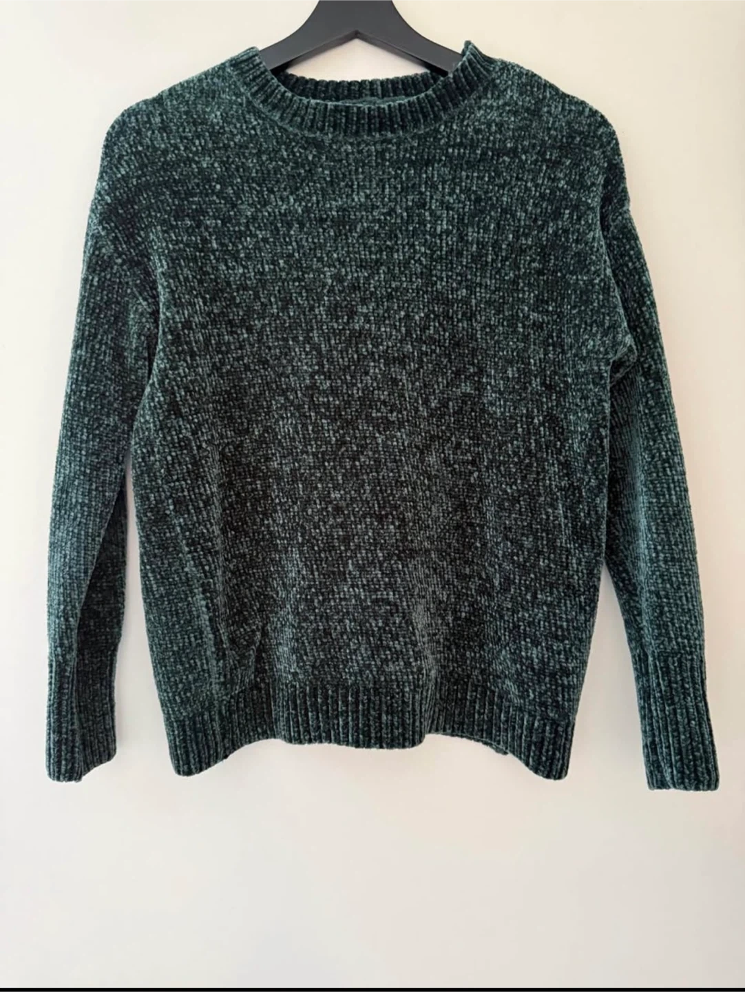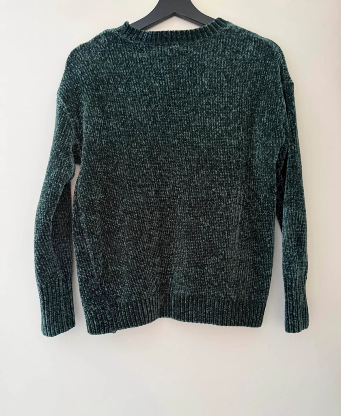 A dark green chenille sweater from HOUSE BRAND. It's a cozy piece perfect for cooler weather. Size is extra small.