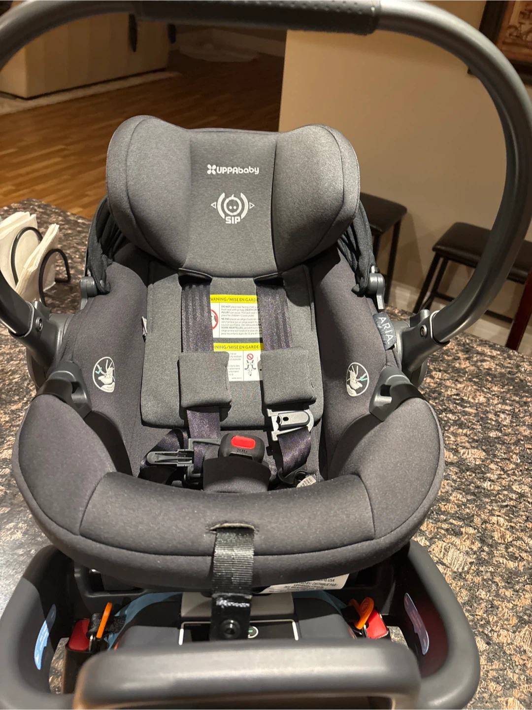 10Selling a UPPAbaby Aria infant car seat in great condition! It's black and ready for a new little one to ride in. This car seat is known for its safety features and comfortable design. Perfect for parents looking for a reliable and stylish option for their baby. My son used this seat literally 4 times and it was purchased less than 3 months ago. Needed to upgrade to a bigger seat as he is already too big for this one. Come with more inserts not pictured here.