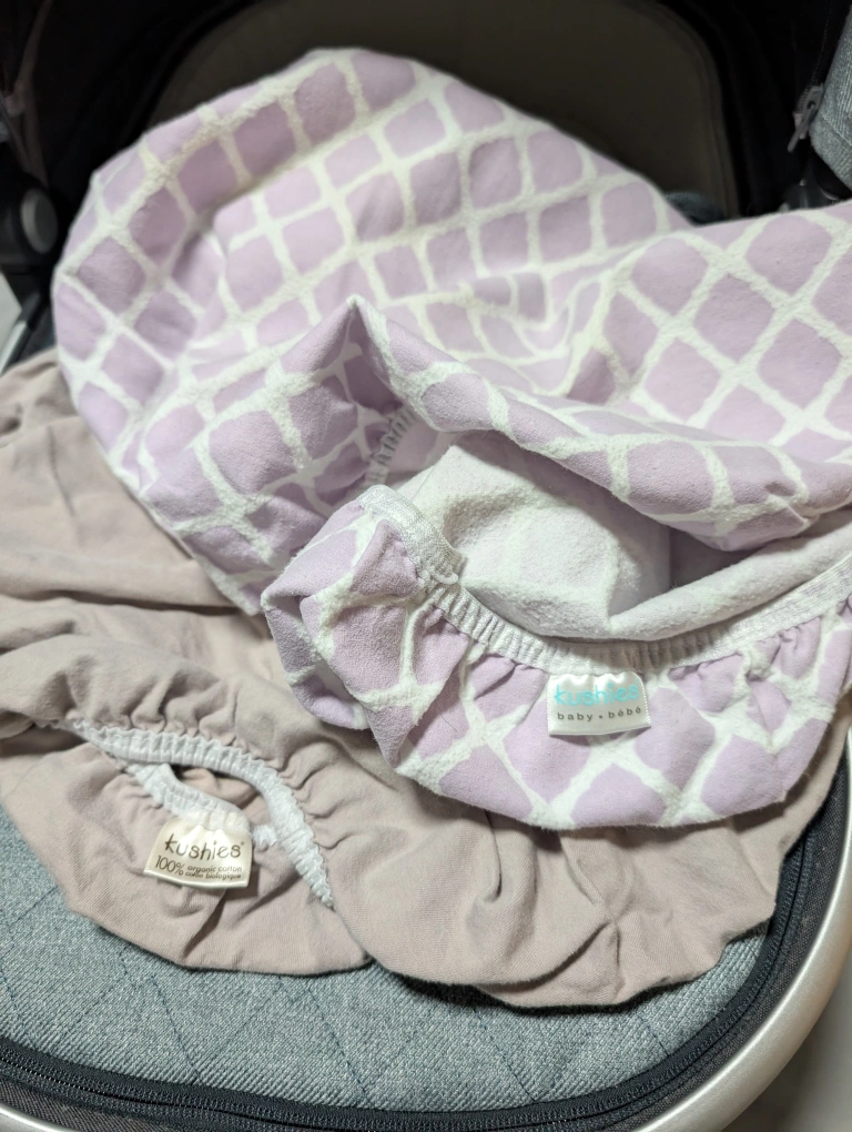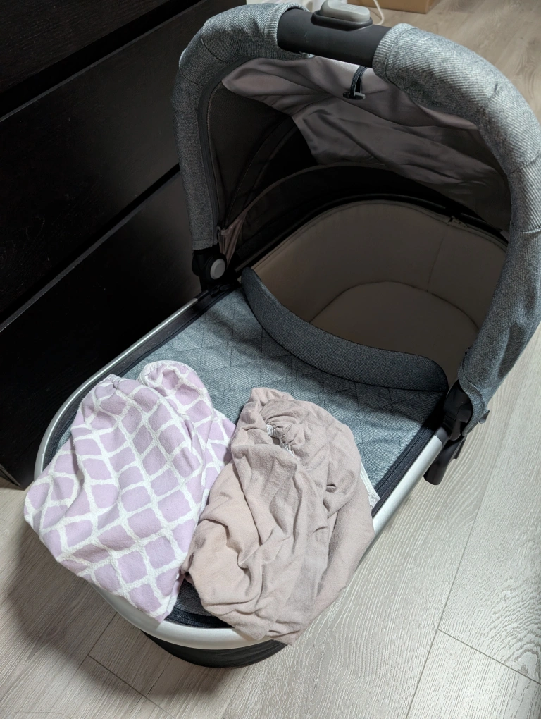 EGUC - Uppababy Bassinet in blue fabirc with two Kushie Organic Cotton bedsheets and unused bug net mainly used indoors for nap time, no rips or stains NS/๐ถ friendly home PU Richmond or Vancouver, can deliver depending on location