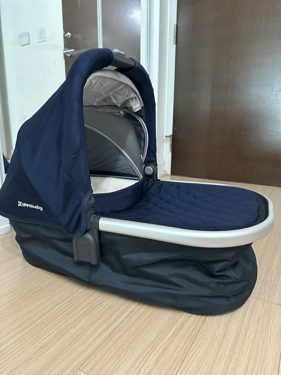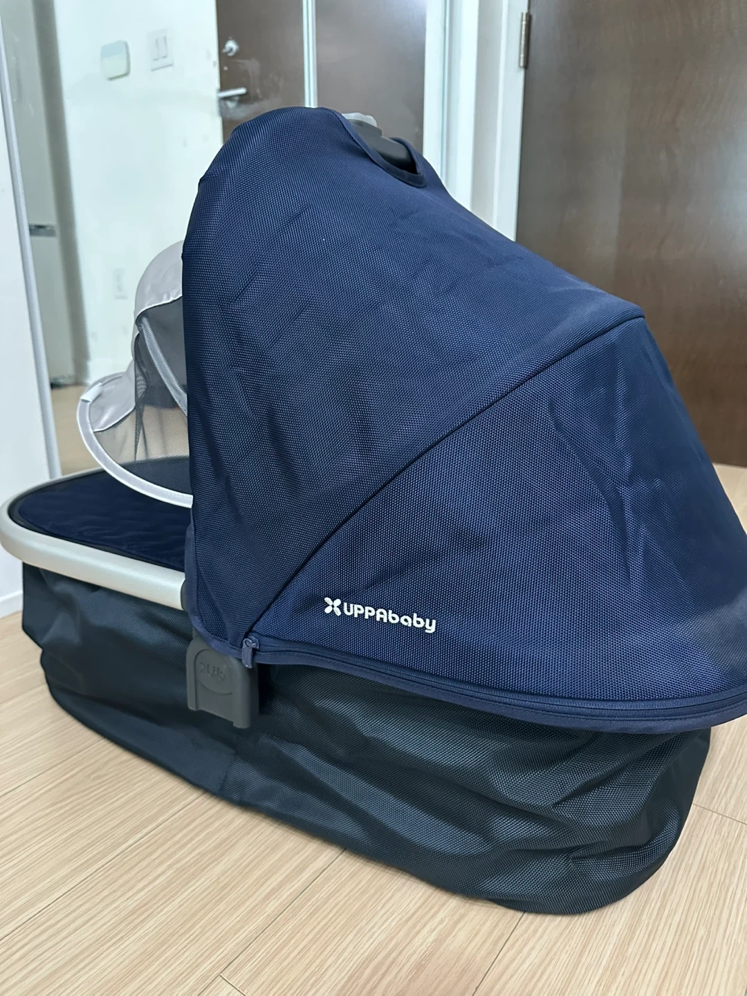68Selling a new UPPAbaby bassinet in navy blue! Never used and ready for a new little one. Perfect for strolls or as a cozy sleeping space. Comes from a smoke and pets -free home