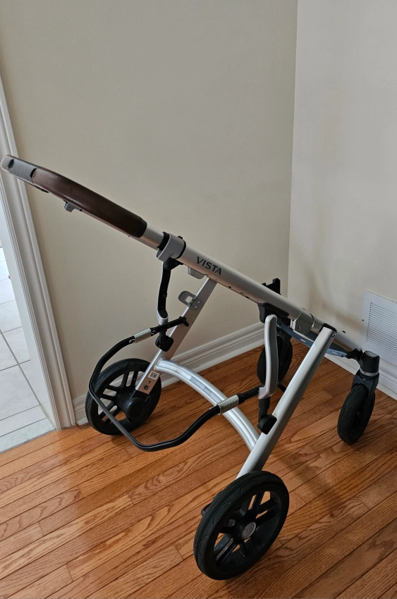 102020 Uppababy Vista V2 frame with wheels. Basket not included. Gently used and always stored indoors. A few minor scratches from general wear.