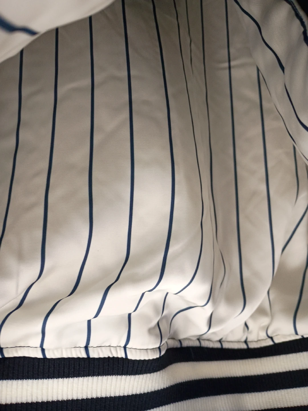 Selling a NYON Yankees jacket with "New York or Nowhere" embroidered on the back. It has a classic baseball jacket design with striped ribbing at the collar, cuffs, and hem. The jacket also features Yankees logos and patches on the sleeve and chest