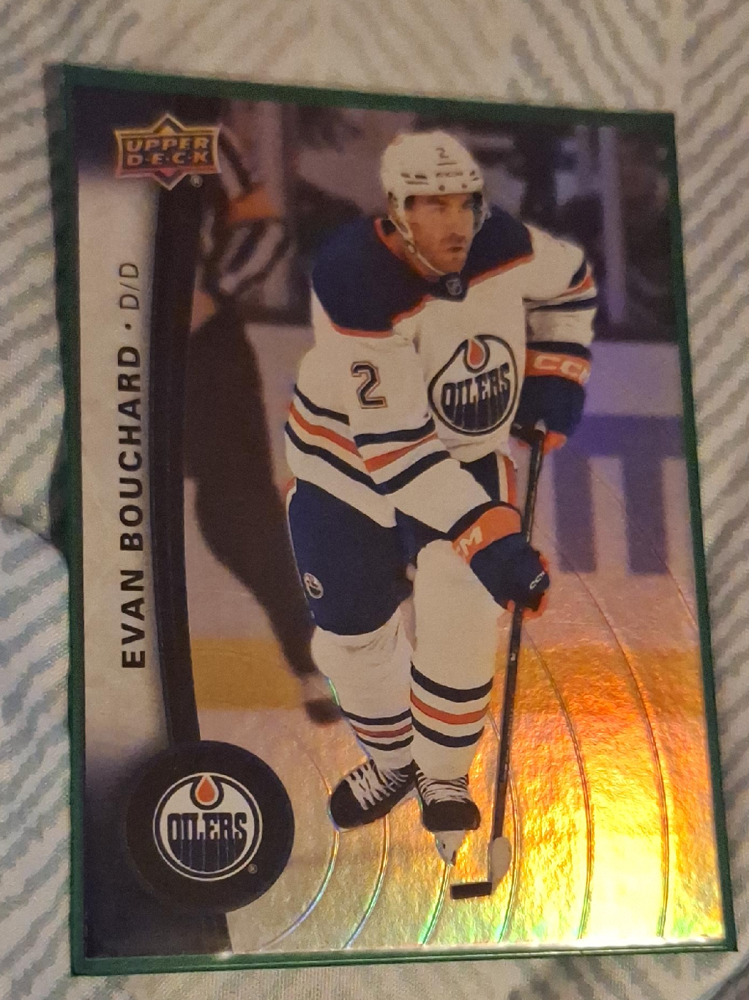 105Selling an Upper Deck hockey card featuring Evan Bouchard of the Edmonton Oilers! A great addition to any hockey card collection