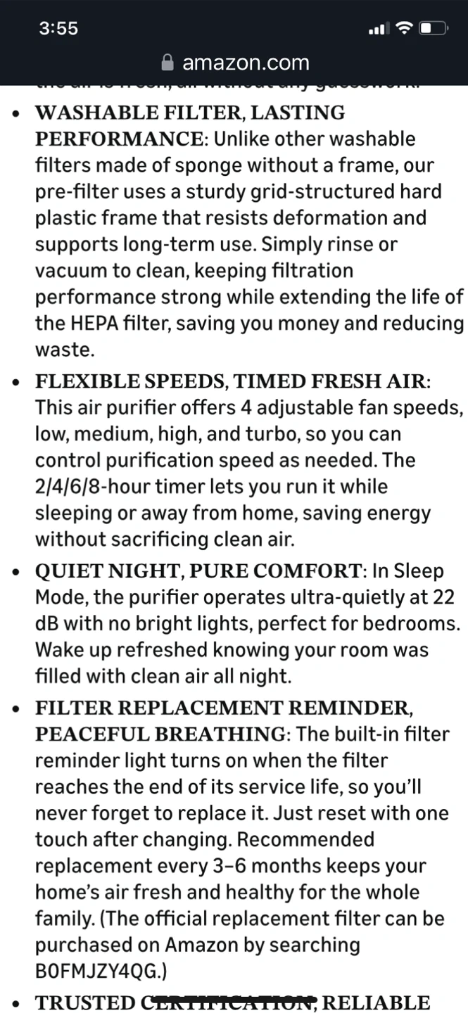 FreAire Air Purifier with washable filter -up to 2600sqft