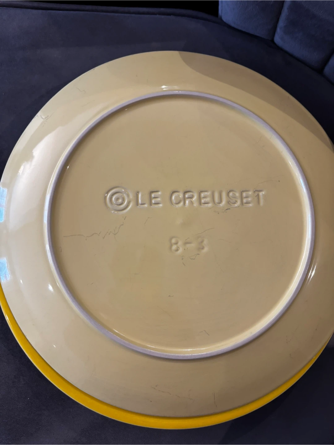 Selling a Le Creuset stoneware plates in a vibrant yellow colour! They’re perfect for adding a pop of colour to your table setting. The plates are in good condition and ready for a new home. They measure 8.3 inches.