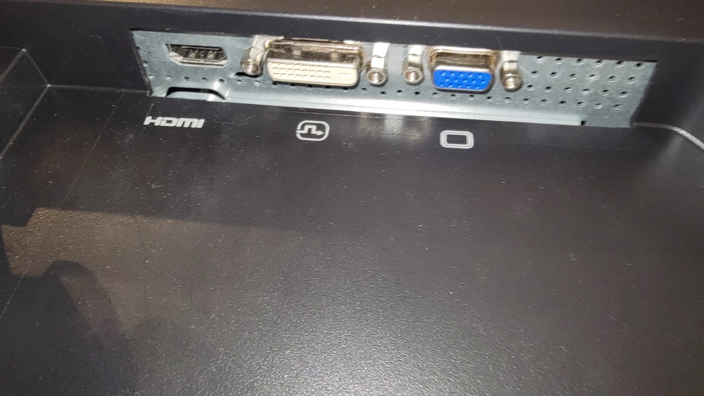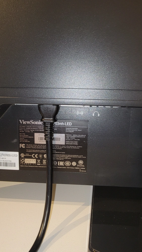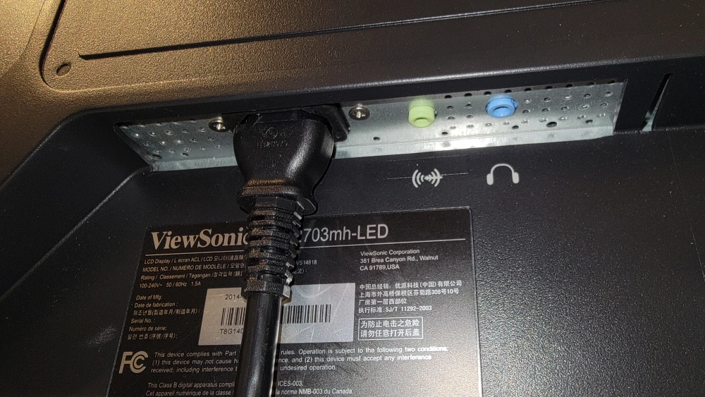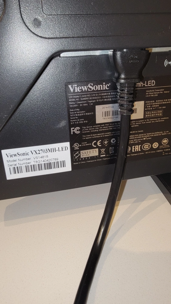 Works fine no issues. Comes with power cord. Have upgraded to a larger monitor.
