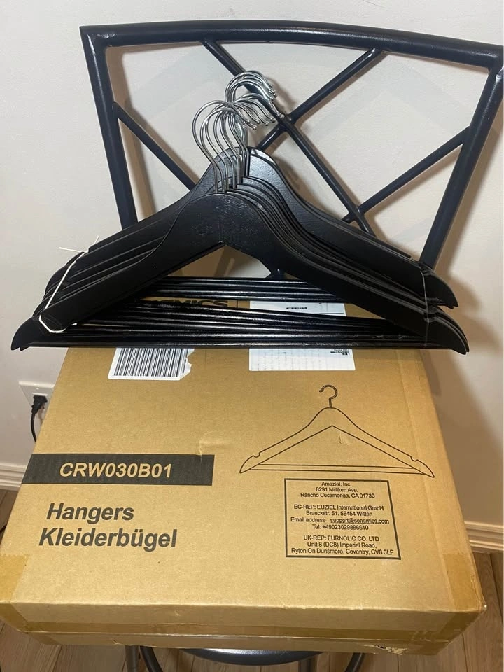 SONGMICS Black Wood + Metal Hook Hangers, Non-Slip Hanger, 30-Pack. Pick up: Brock Road and Rex Heath Drive in Pickering. No holds - first come first serve.