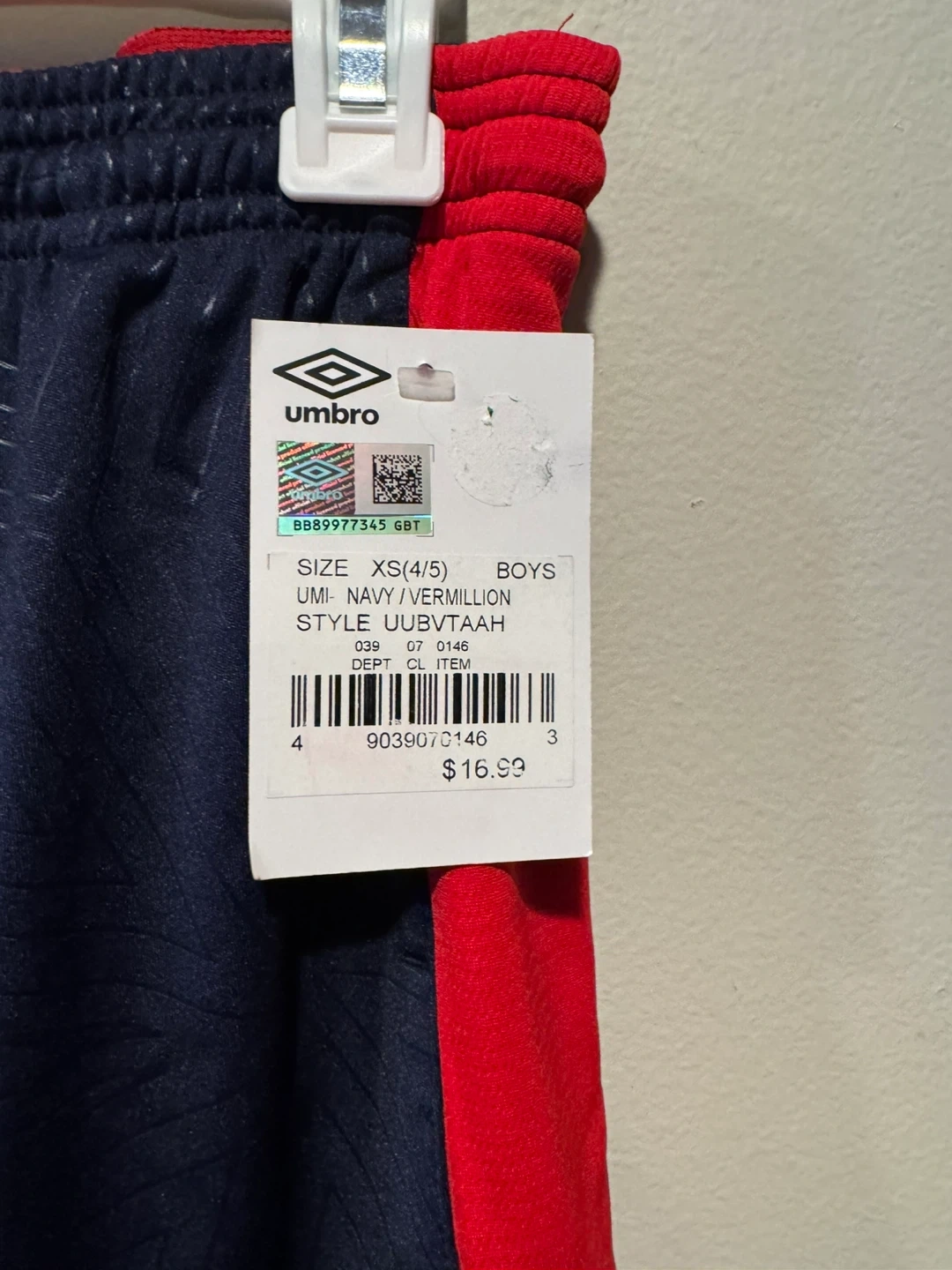 New Umbro Boys' Navy & Red Shorts - Size XS (4/5)