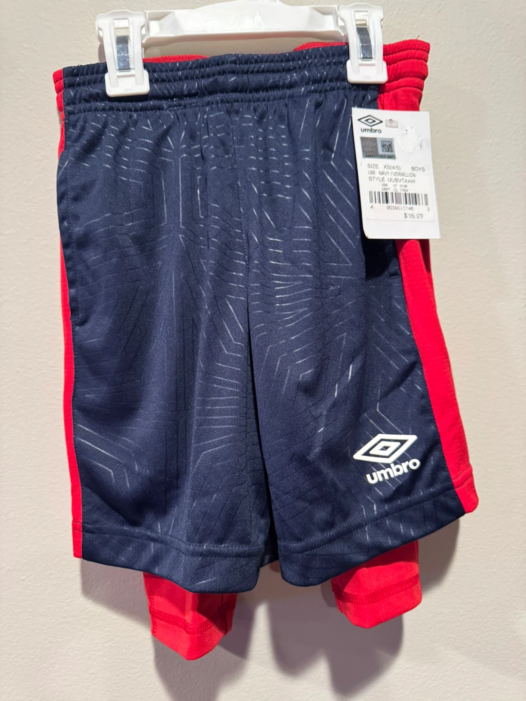New Umbro Boys' Navy & Red Shorts - Size XS (4/5)