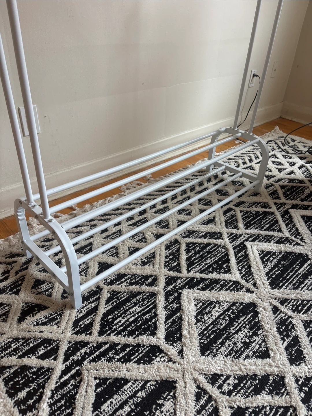 White Metal Garment Rack with Shoe Shelf