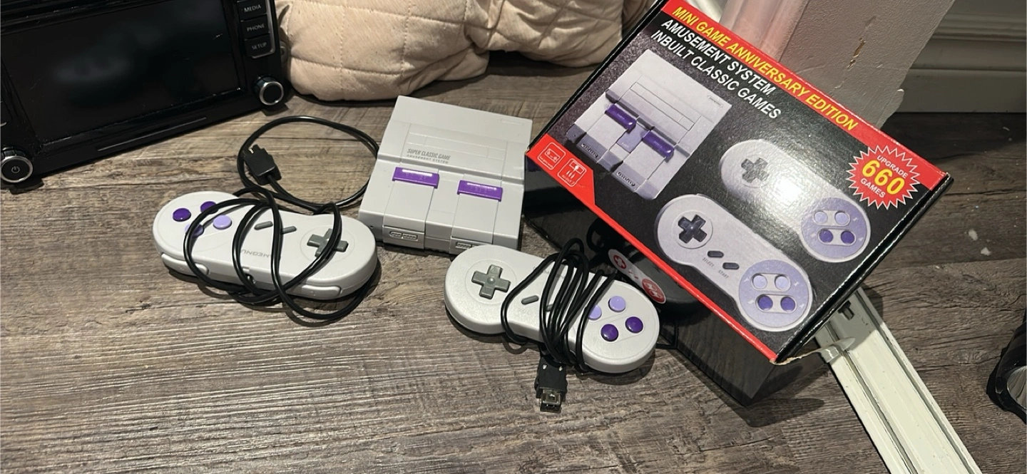 Console with two controllers. Includes original box. Playing some classic games is a great way to relax after a long day.