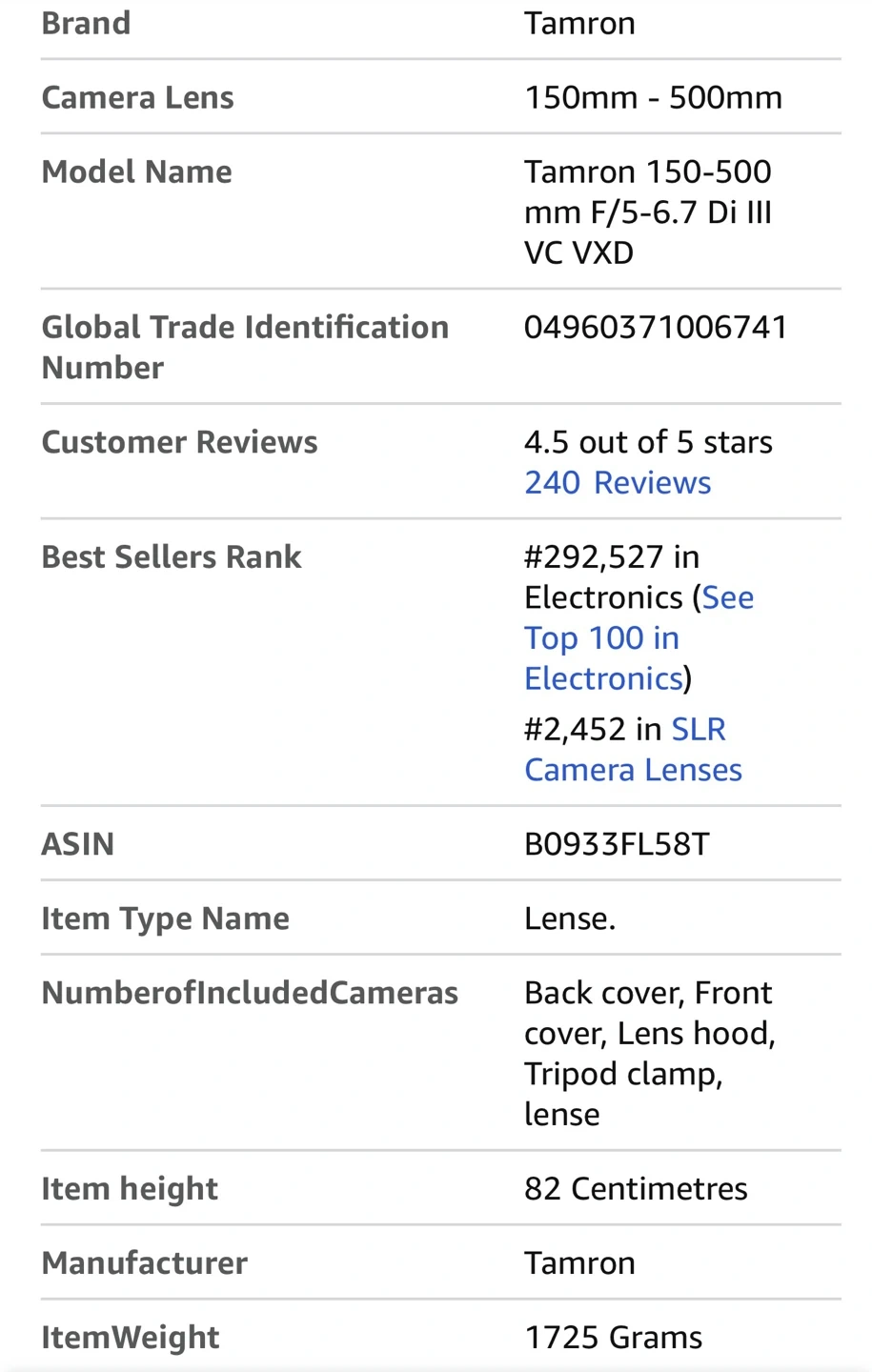 Tamron A057 150-500mm F/5-6.7 Di III VC VXD Lens for Sony E-Mount