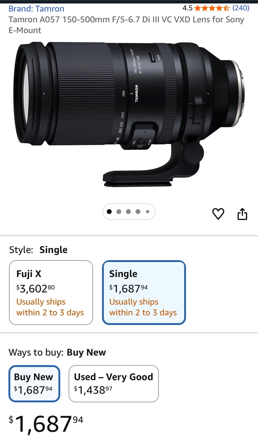 Tamron A057 150-500mm F/5-6.7 Di III VC VXD Lens for Sony E-Mount