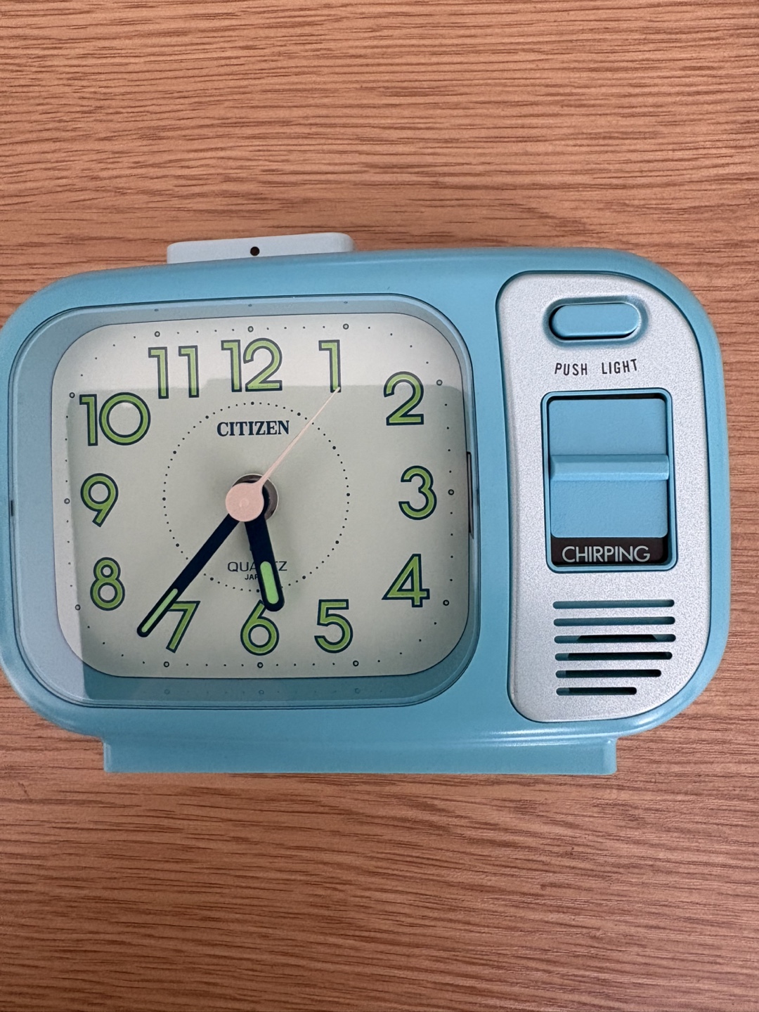 Selling a charming Citizen quartz alarm clock with a retro TV-style design! It features a chirping alarm and a push light function. The clock is never used and in perfect working condition.