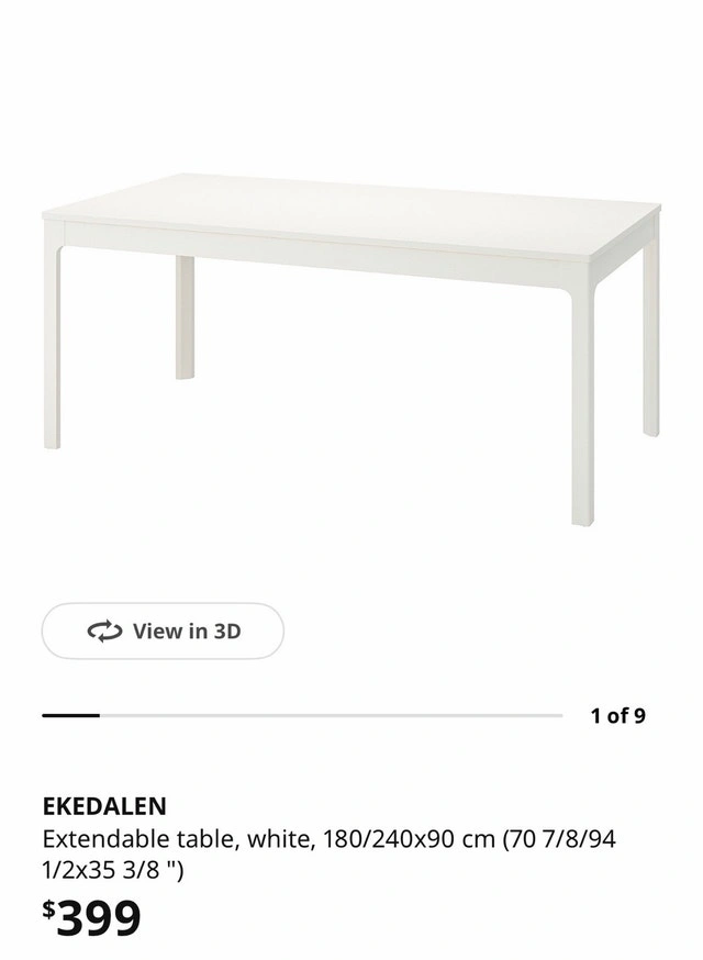This extendable IKEA Ekedalen table paired with 4 chairs is perfect for any dining space, offering both style and functionality. The set is in used condition, but has been well maintained and has lots of life left. It is only one year old. Table: IKEA Ekedalen, white, extendable. Chairs: 4 IKEA white chairs with Tibbleby beige-gray seat covers. Only pick up.
