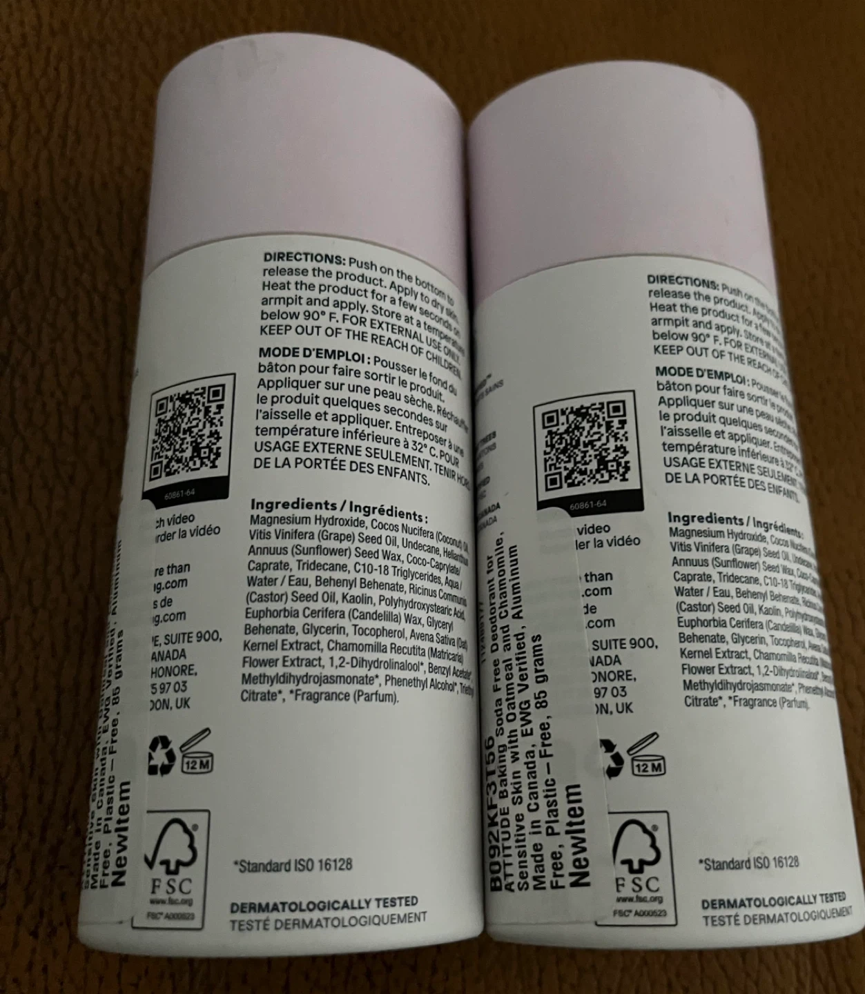 Attitude Oatmeal Sensitive Natural deodorants! They are 85 g / 3 oz each and are baking soda free with oat and chamomile. They are also vegan and plastic-free!