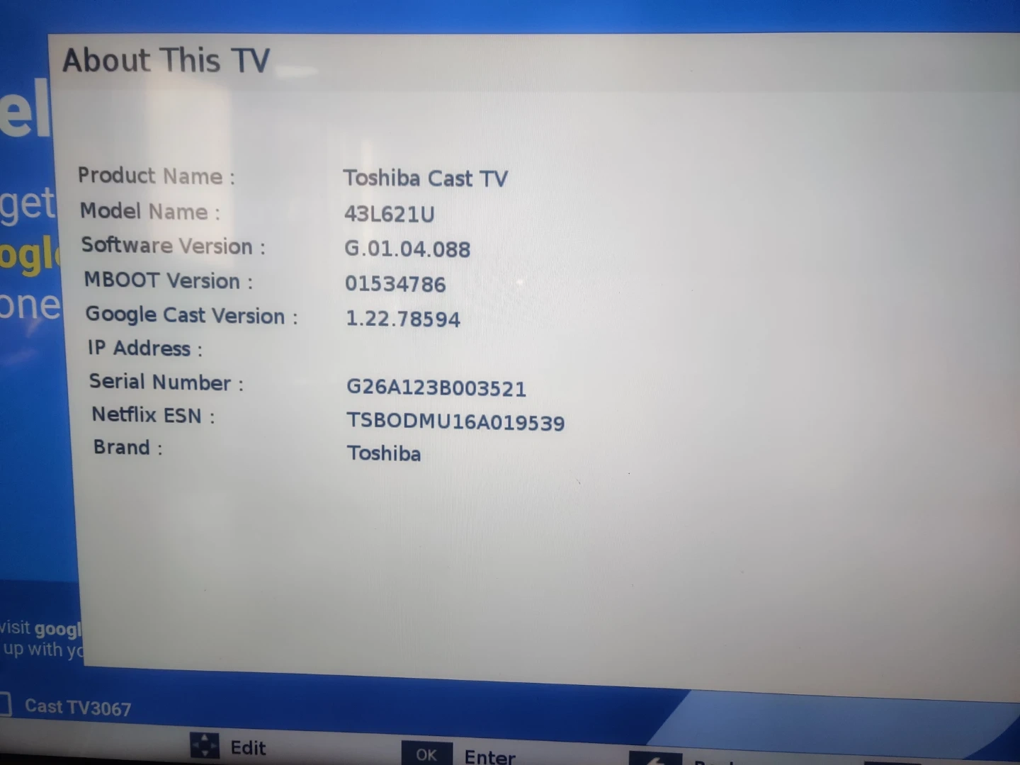This is a Toshiba 43L621U 4K Ultra HD smart TV. It's a Cast TV model, ready for your smart home setup. Built-in Google Cast functionality is included.