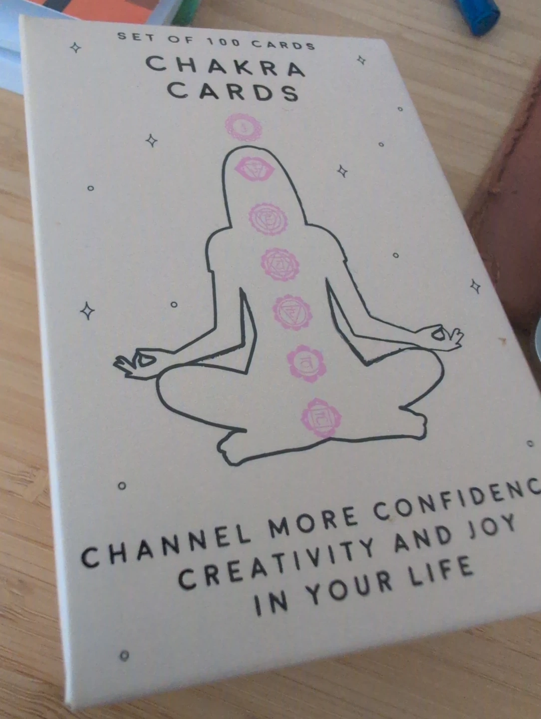 This set includes 100 Chakra Cards designed to help channel more confidence, creativity, and joy. The cards feature chakra diagrams and inspirational text.