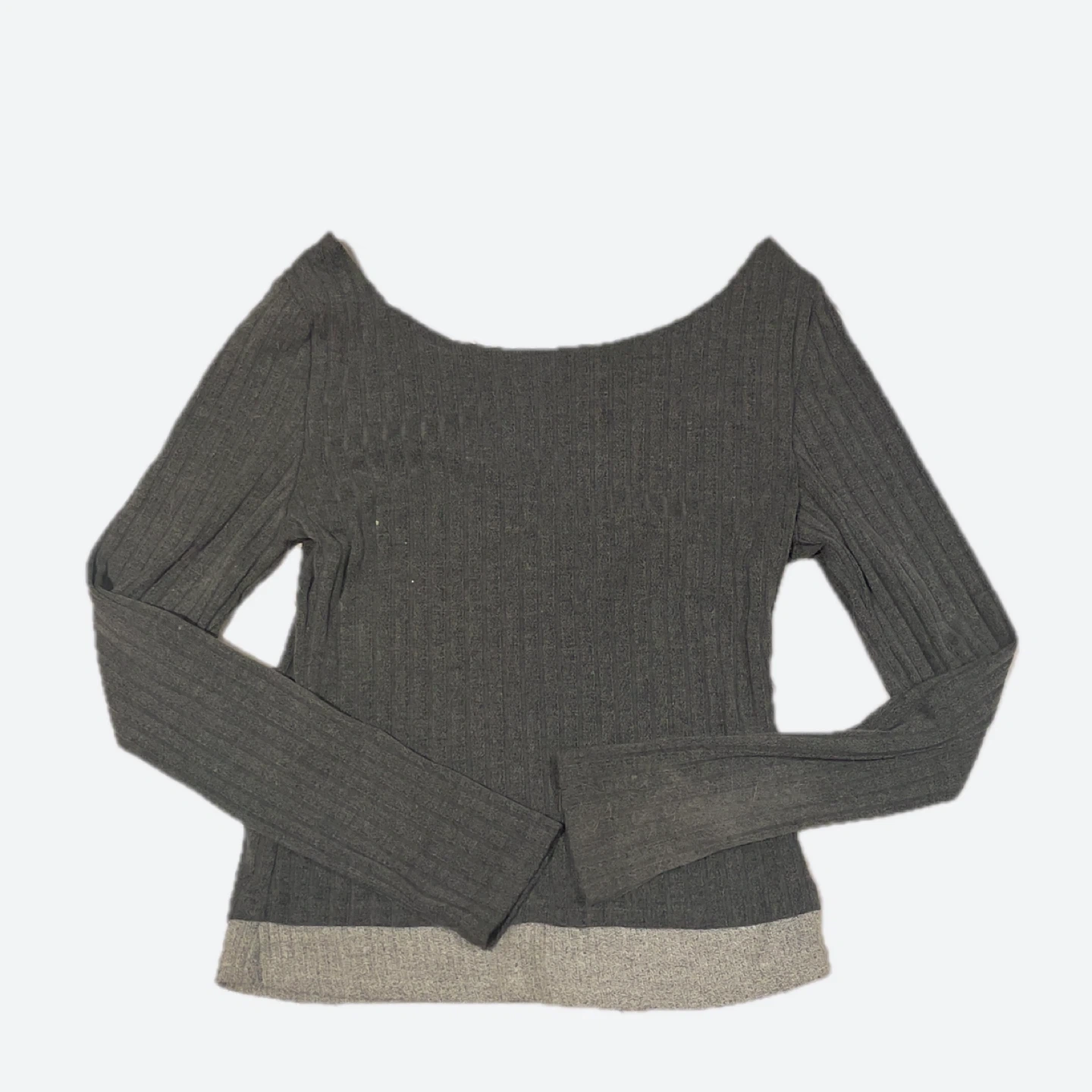 A lovely grey long sleeve top in great condition! It features a unique neckline and stylish design. Perfect for layering or wearing on its own! Fits like a. XS/S.