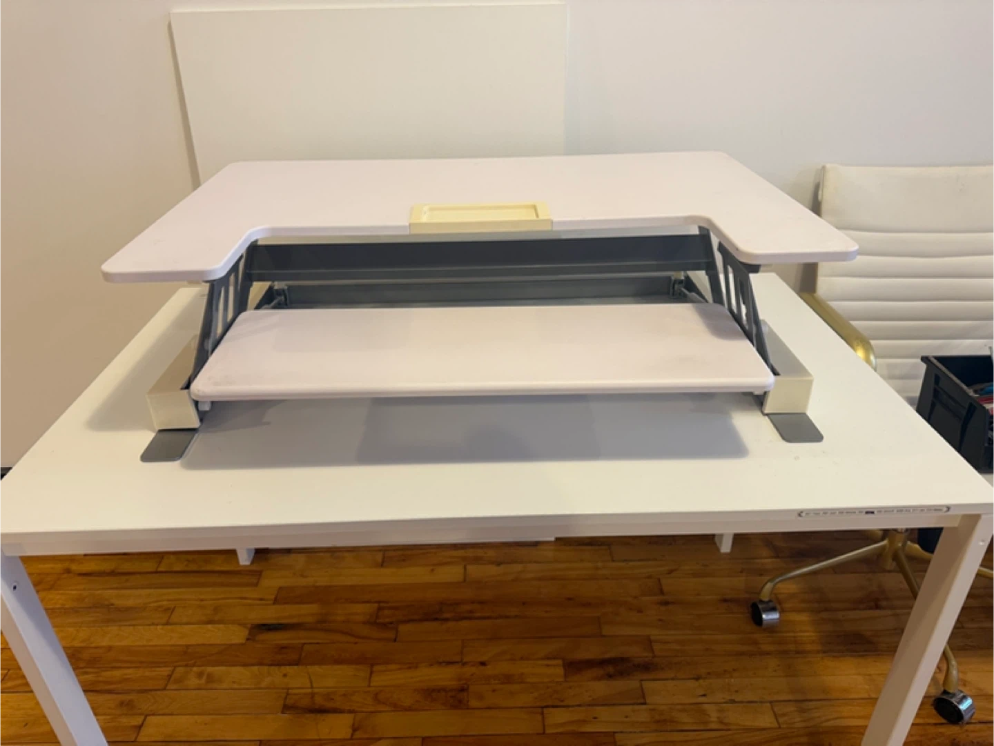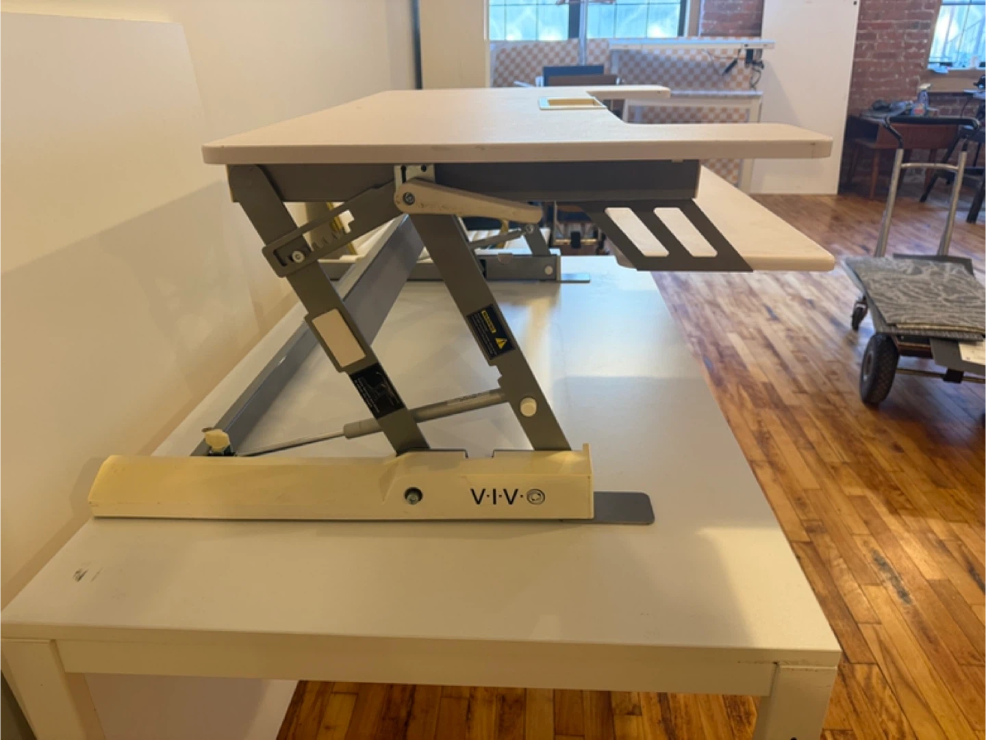 This VIVO standing desk converter allows you to easily switch between sitting and standing positions. It features a spacious top surface and a lower keyboard tray. The unit's adjustable height mechanism is smooth and reliable.