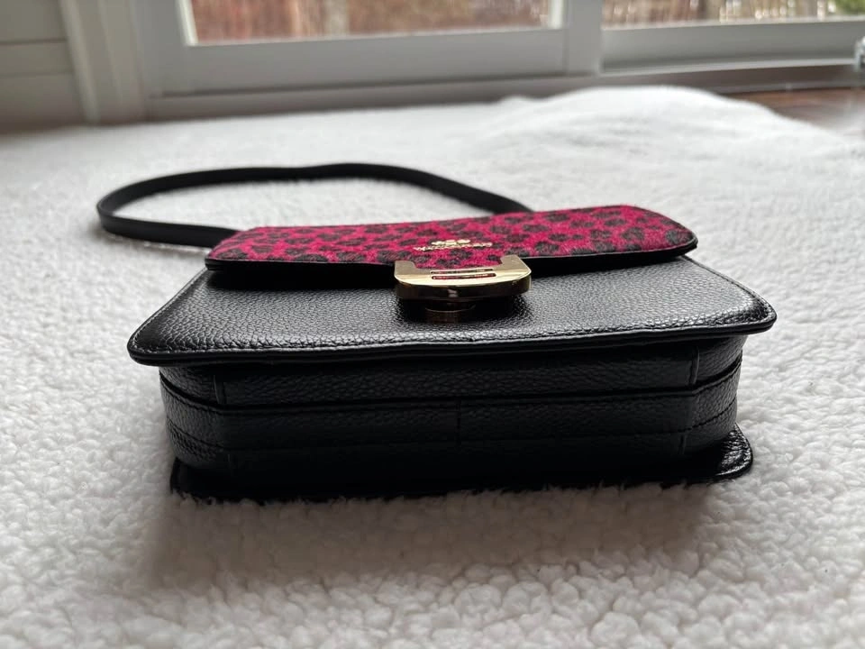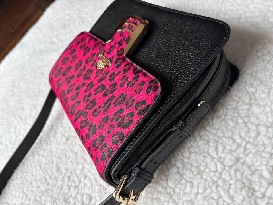 Designer Wittchen Black Genuine Leather Bag w/ Pink Leopard Prin