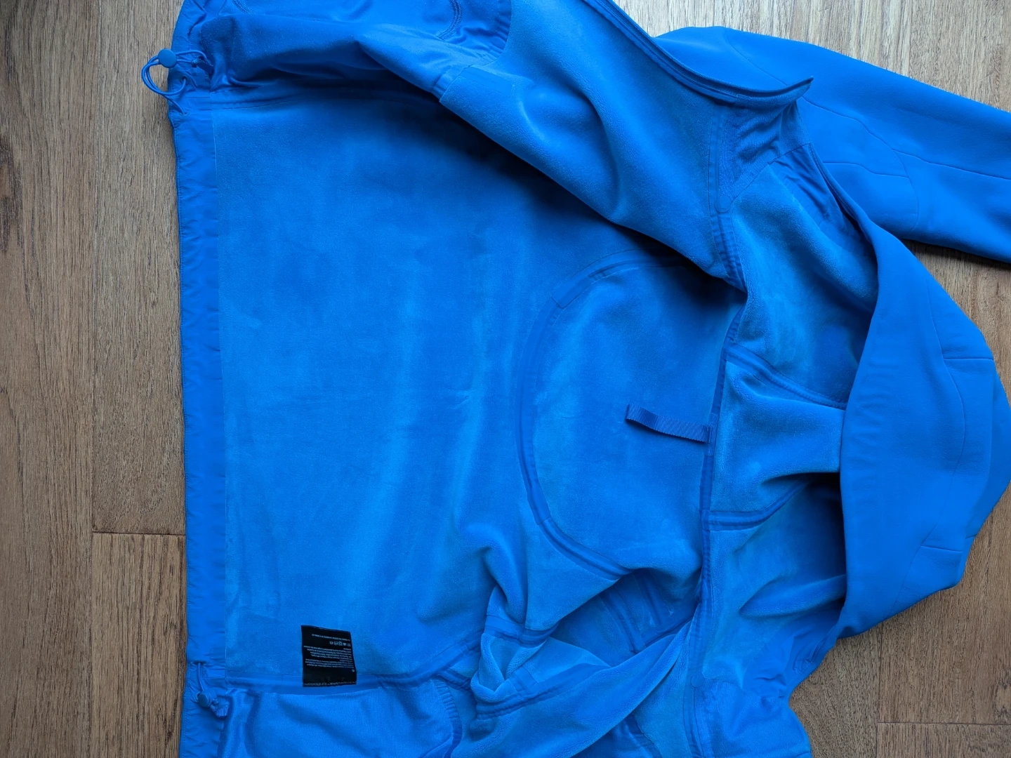 Lululemon hooded softshell jacket in a vibrant blue colour.