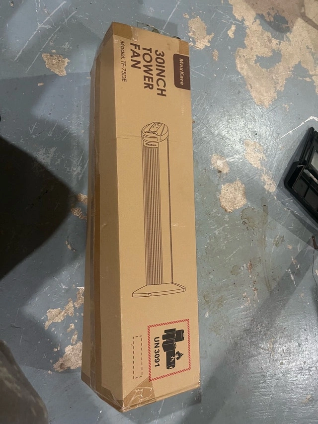 Keep cool with this brand new MaxKare 30-inch tower fan, model YF-30DE. It's still in its original packaging and ready to provide a refreshing breeze in your home or office. It's been waiting patiently in its box for a new home. If the ad is up, the fan is available!