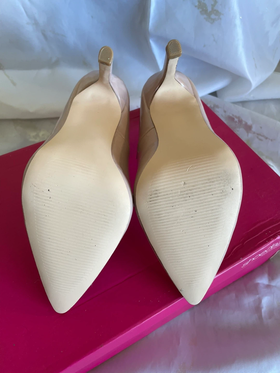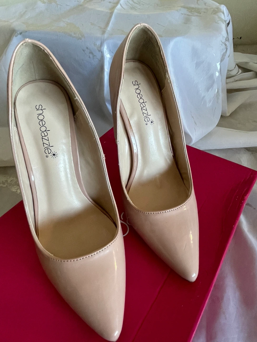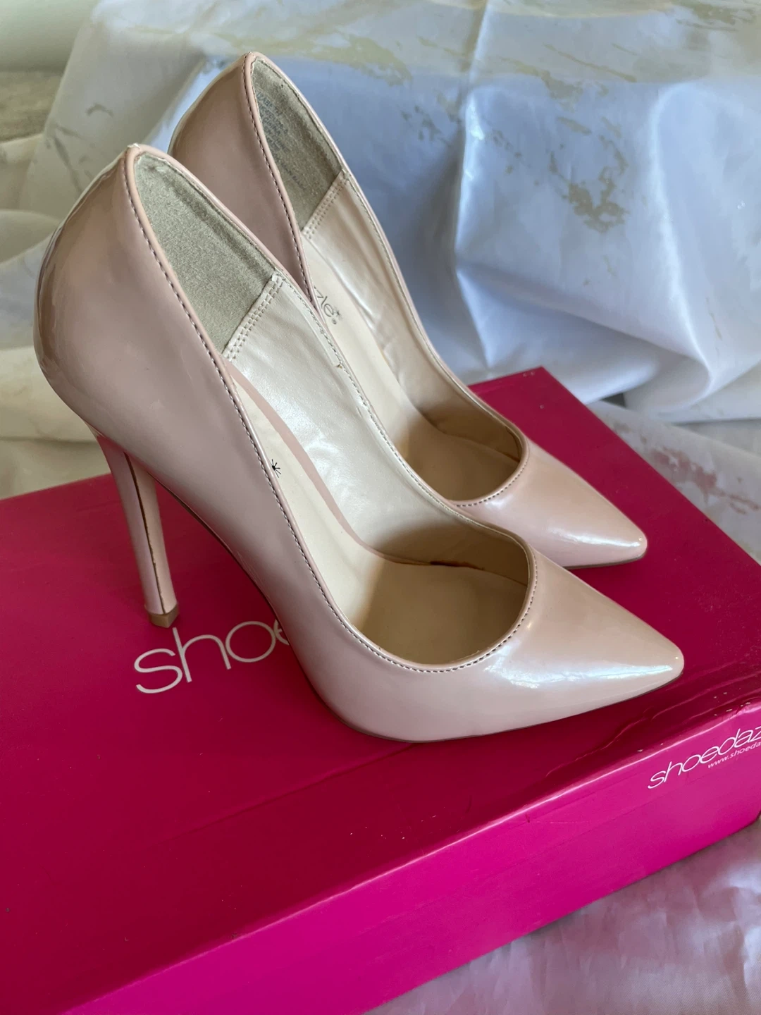 These ShoeDazzle Elizabeth heels are a lovely light blush colour. They're a US size 6. Includes the original box! They have never been worn.