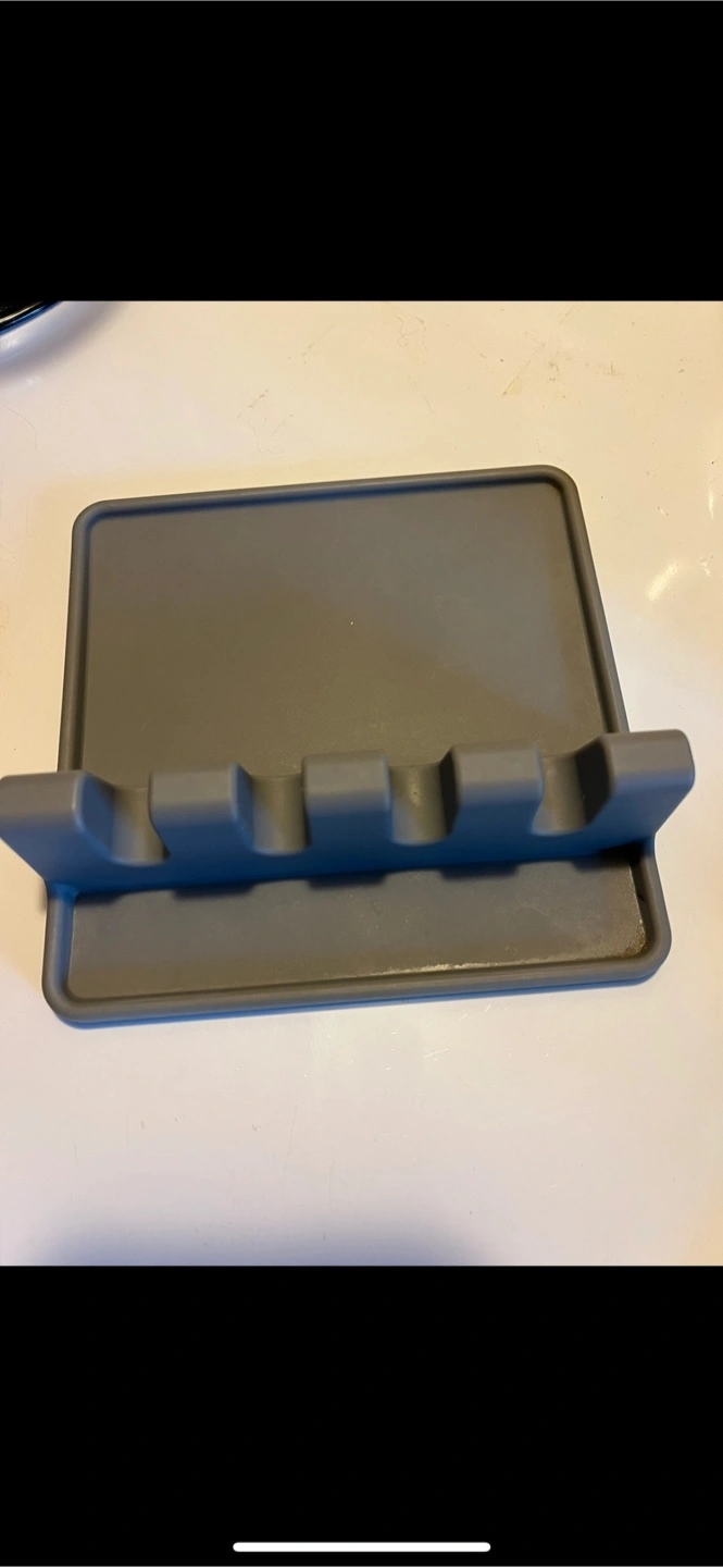Keep your stovetop clean with this handy grey silicone utensil rest! It's perfect for holding spoons, spatulas, and other cooking utensils while you're whipping up a delicious meal. It's in great condition and ready for a new home