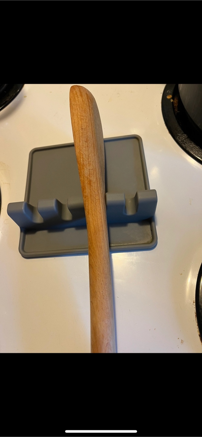 Keep your stovetop clean with this handy grey silicone utensil rest! It's perfect for holding spoons, spatulas, and other cooking utensils while you're whipping up a delicious meal. It's in great condition and ready for a new home