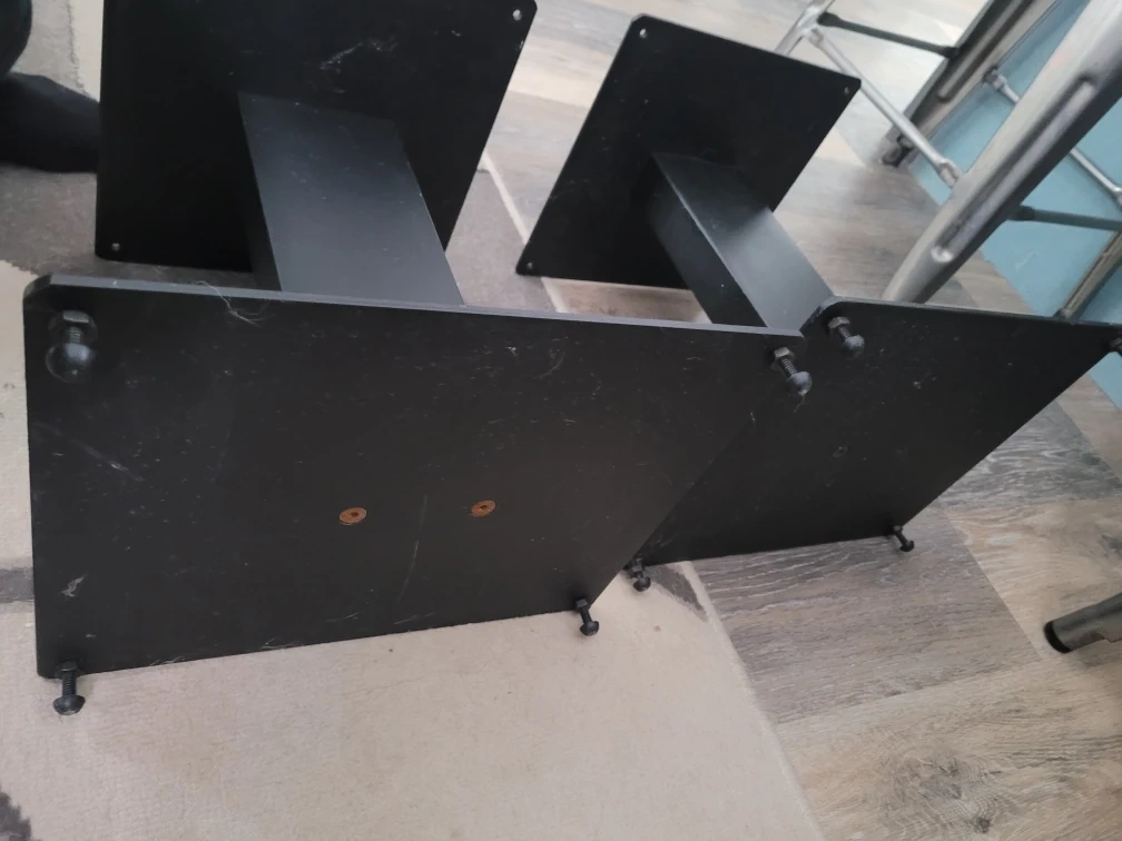 Pair of black speaker stands made by Target Audio Products. These sturdy stands are made in England and would be useful for elevating your bookshelf speakers. They're black and made of metal.featuring a fixed height 300 mm/ 12 inch. It's a very heavy stand with 9.8 by 12 base and 9.5 top.