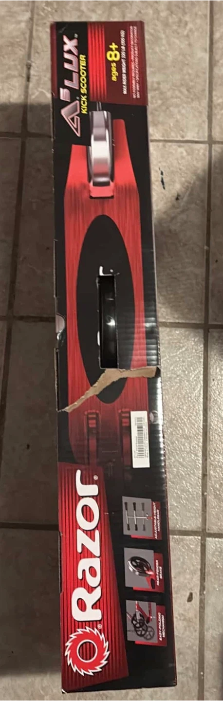 Selling a Razor A Lux Kick Scooter in red! It is suitable for ages 8 and up. It features an adjustable handlebar,and an easy-folding mechanism. The box is included! Still new asking 120 dollars on it.