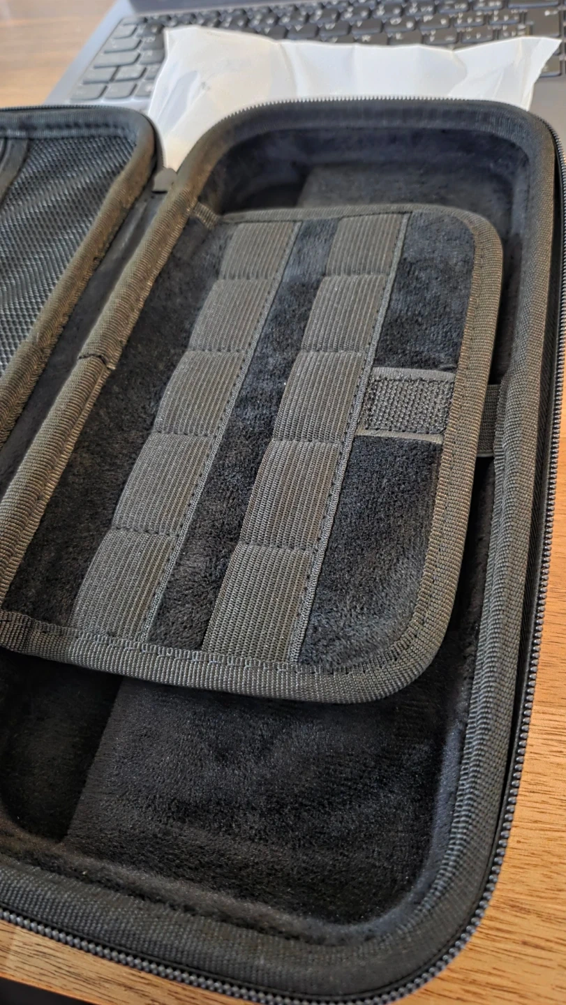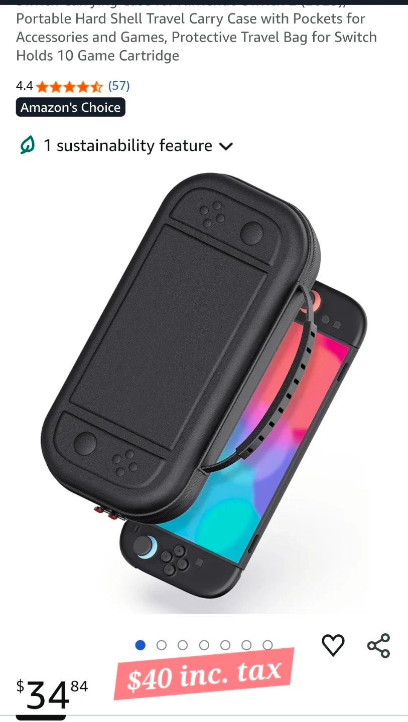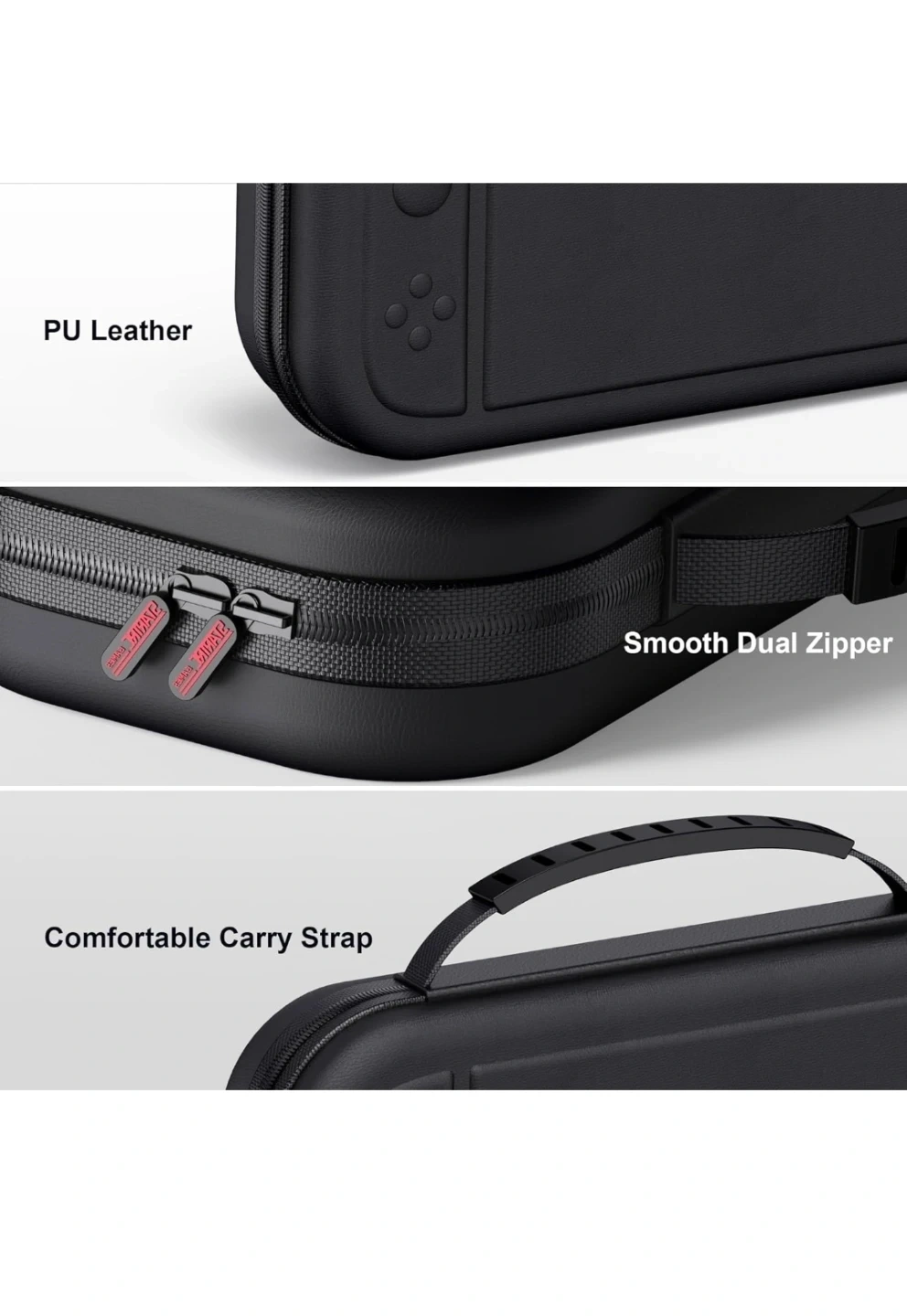 This STARTRC carrying case is brand new. It's a portable, hard shell travel case for Switch and can hold 10 game cartridge and other accessories. It's made of PU leather and has inner soft polyester lining with smooth dual zipper. Original price is $40 (save $$), so please don't ask for a lower price. Check all images for other details.