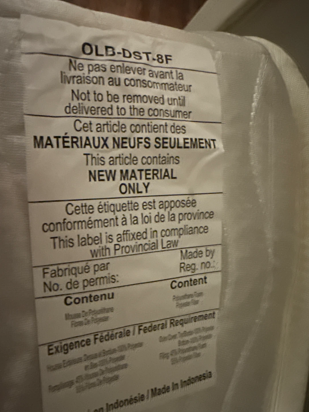 This mattress is made with new material only. It's labelled in compliance with Provincial Law and Federal Requirement. Made in Indonesia ,used,change queen size bed ,so sell